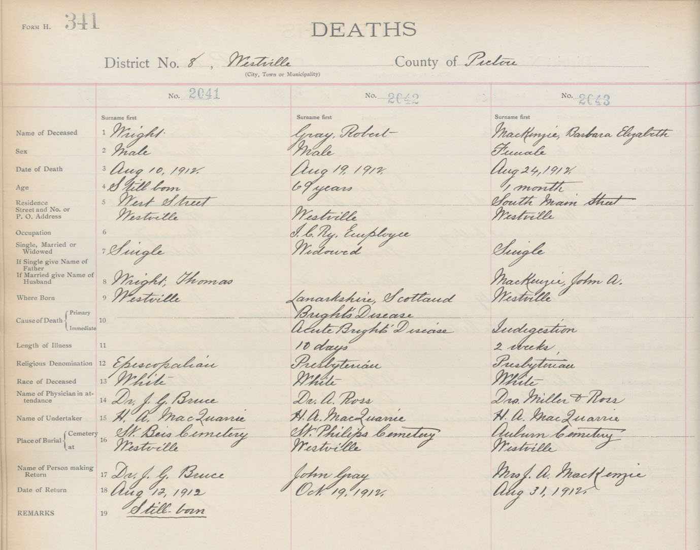 Male Death Registration: Year: 1912 book: 14 page: 341 number: 2041