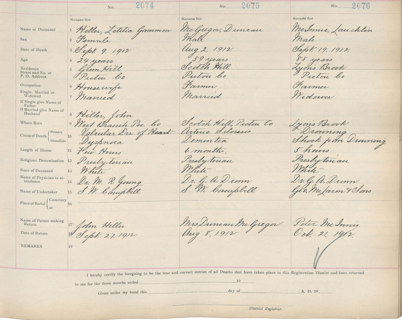 Death Registration: Year: 1912 book: 14 page: 346 number: 2074
