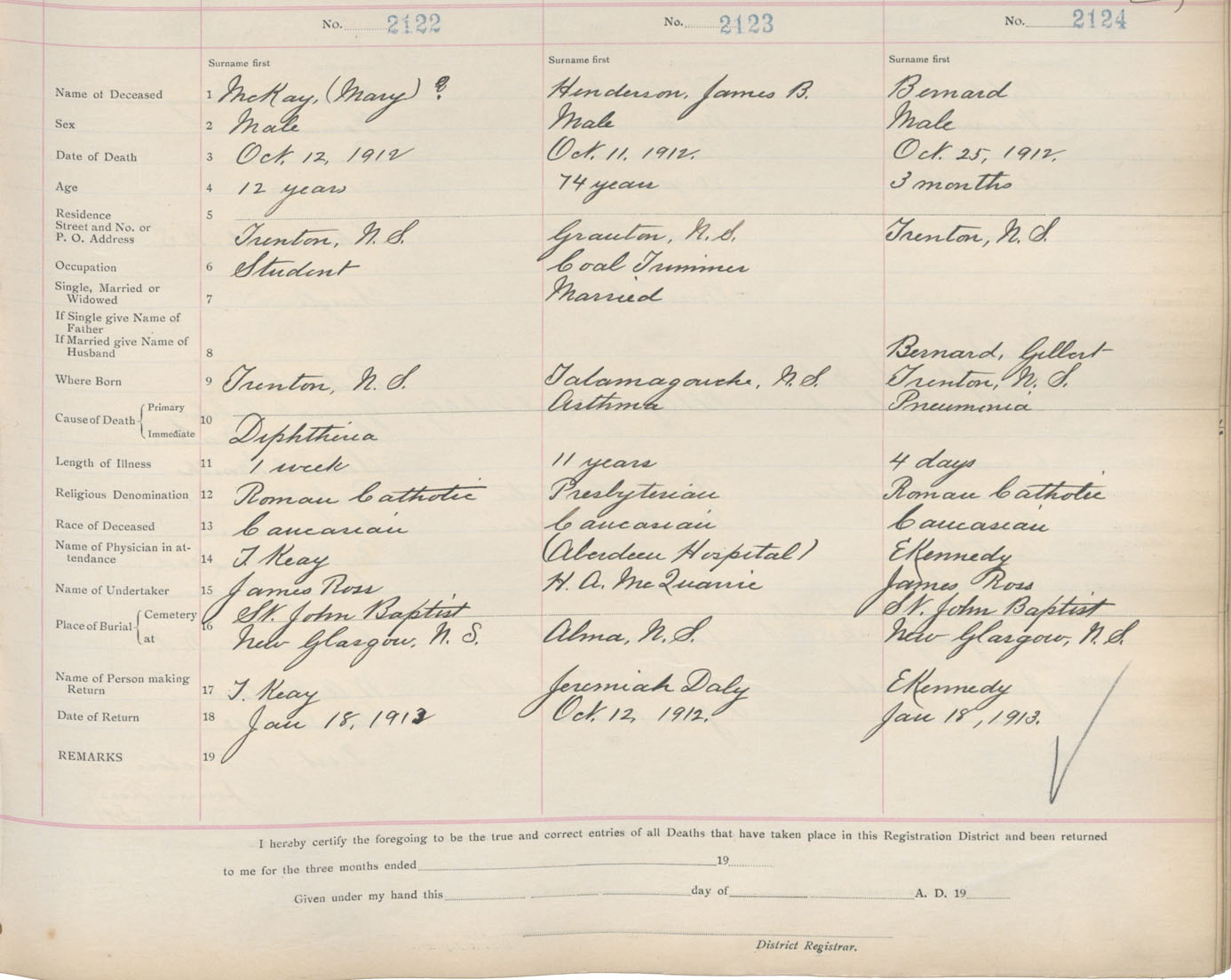 Male Death Registration: Year: 1912 book: 14 page: 354 number: 2124