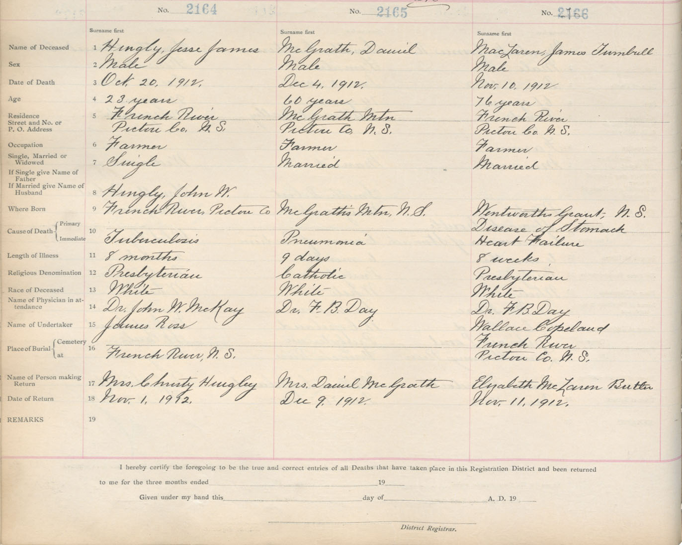 Death Registration: Year: 1912 book: 14 page: 361 number: 2166