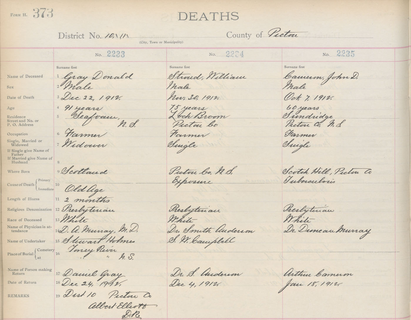 Death Registration: Year: 1912 book: 14 page: 373 number: 2233