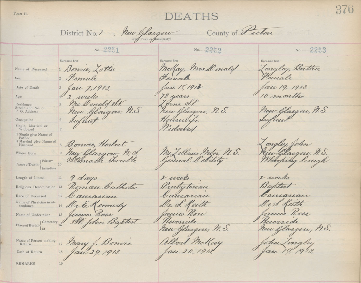 Death Registration: Year: 1913 book: 14 page: 376 number: 2251