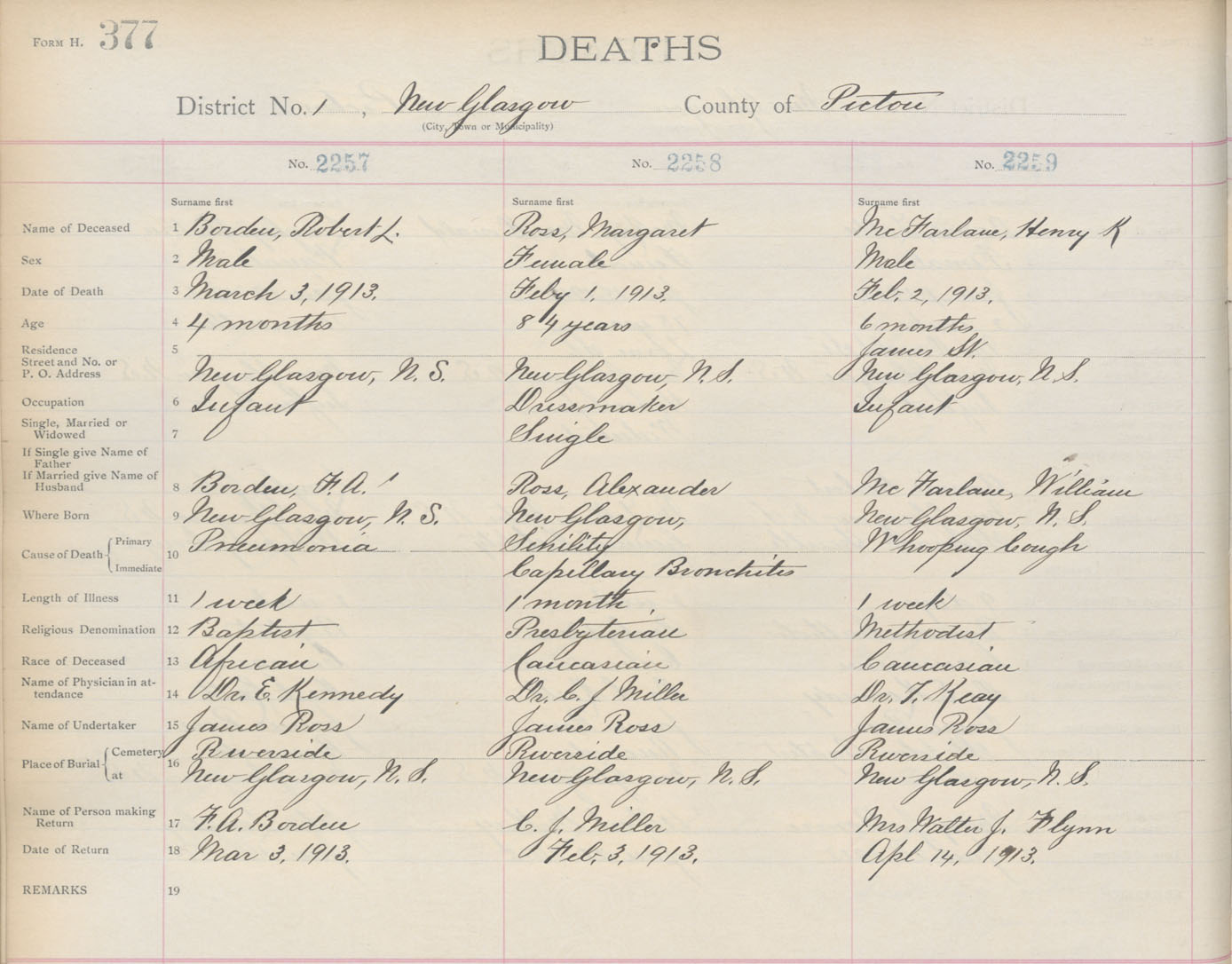 Death Registration: Year: 1913 book: 14 page: 377 number: 2257