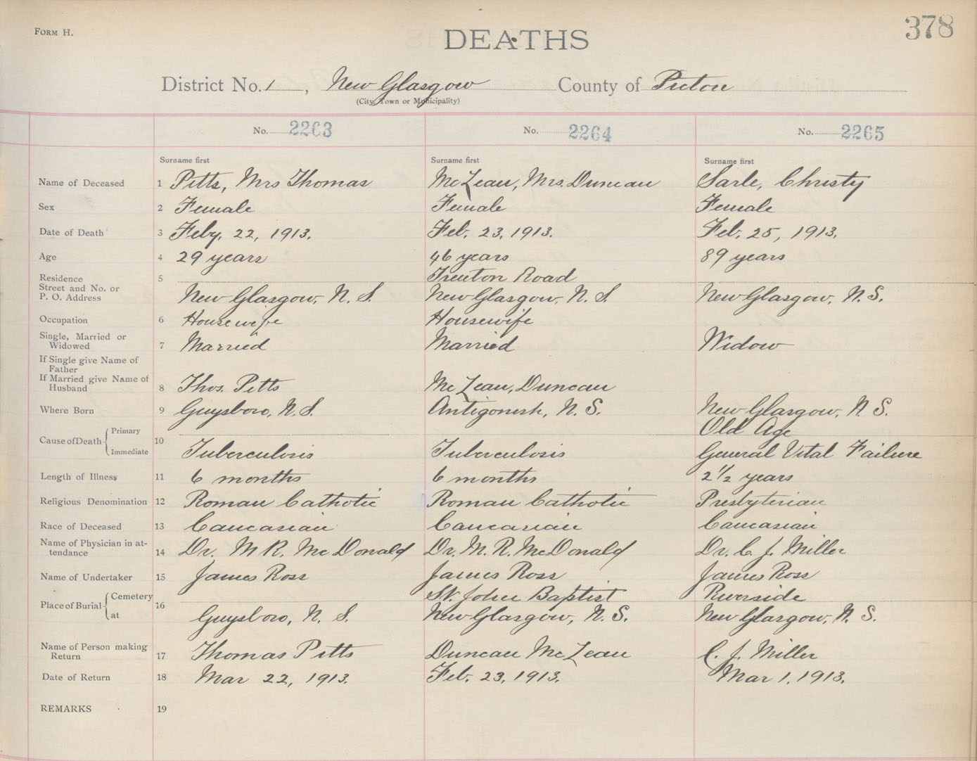Death Registration: Year: 1913 book: 14 page: 378 number: 2263