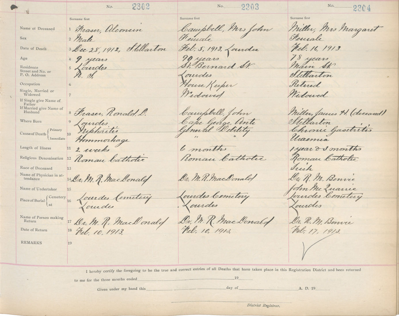Death Registration: Year: 1913 book: 14 page: 384 number: 2302