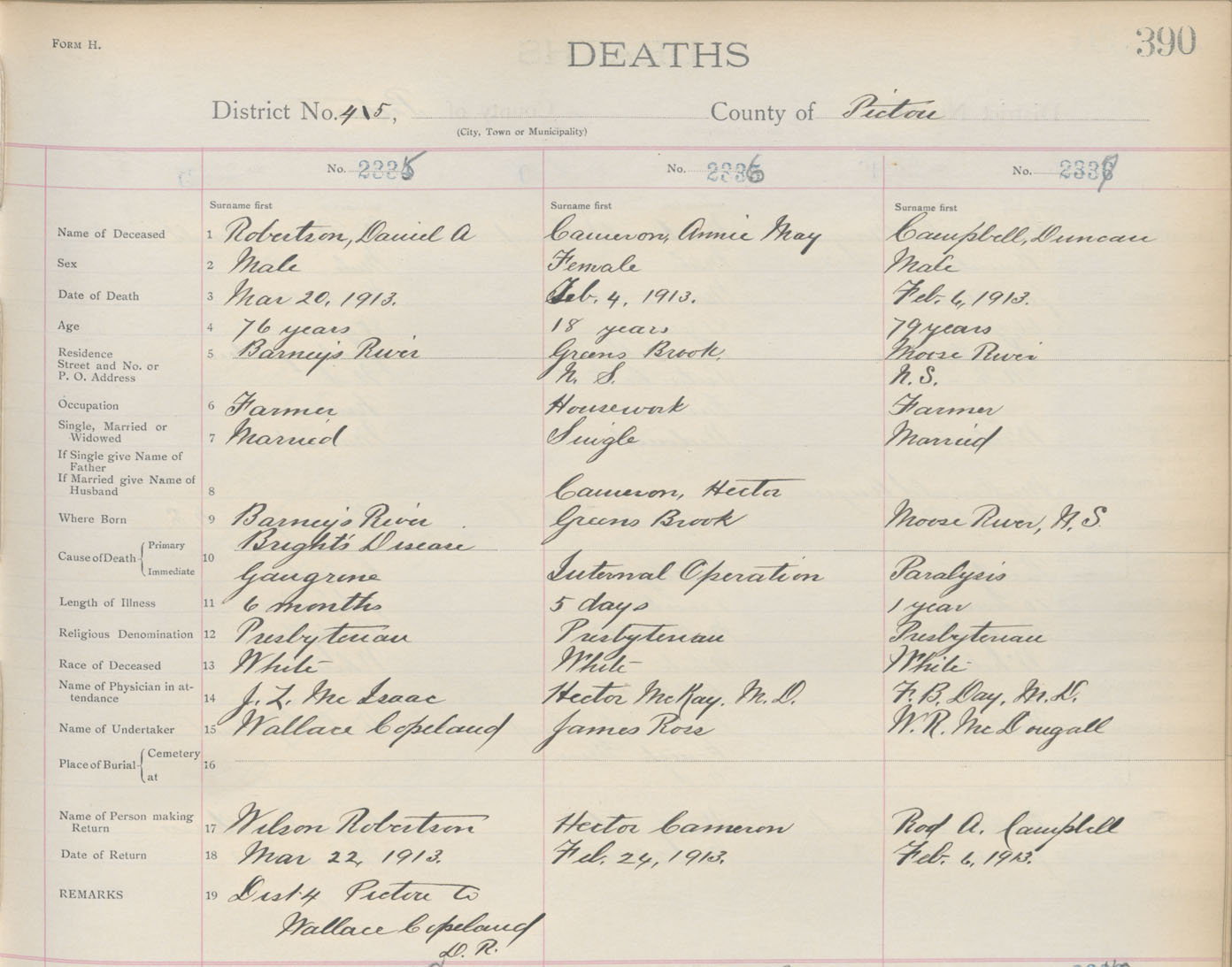 Death Registration: Year: 1913 book: 14 page: 390 number: 2335