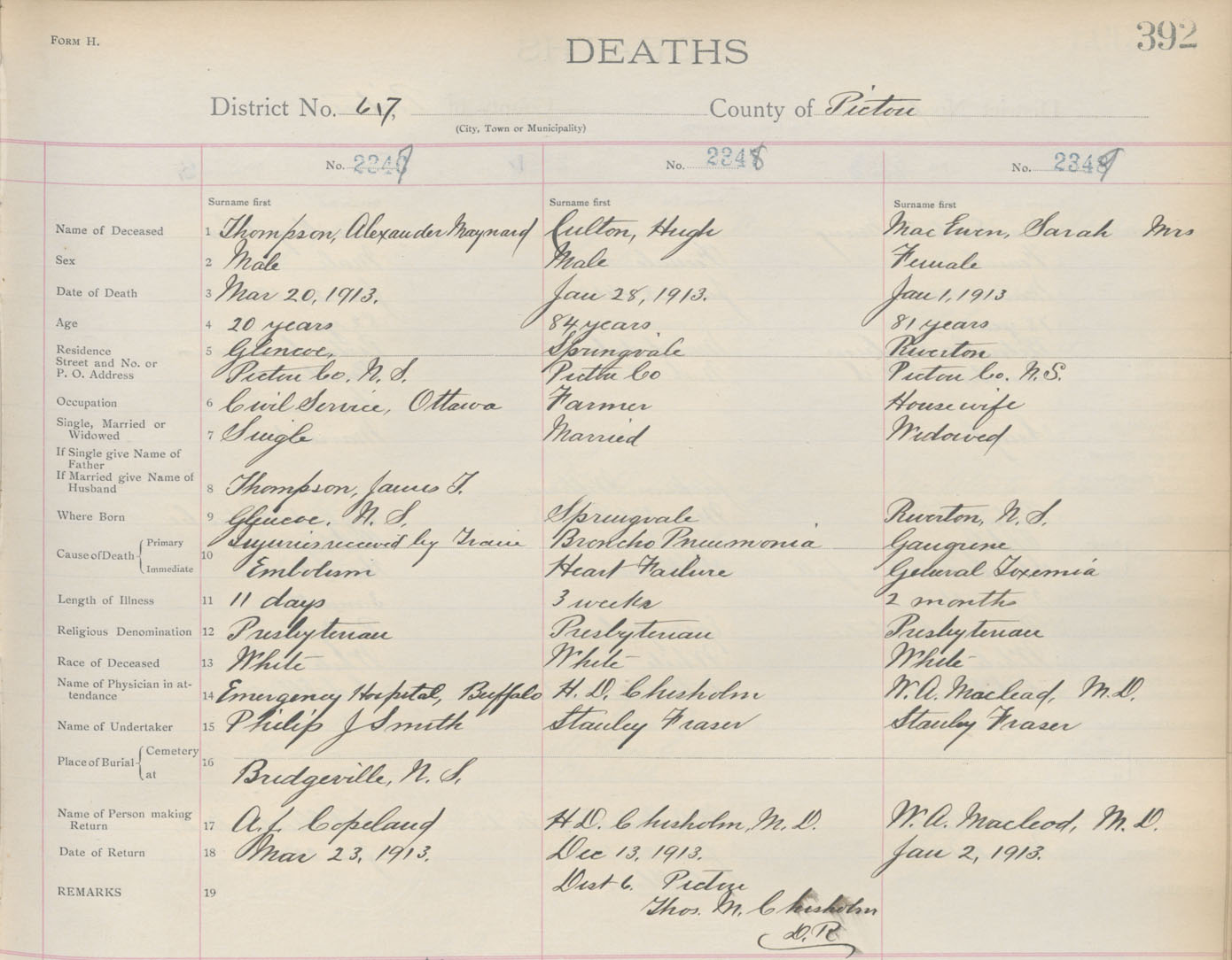 Death Registration: Year: 1913 book: 14 page: 392 number: 2347