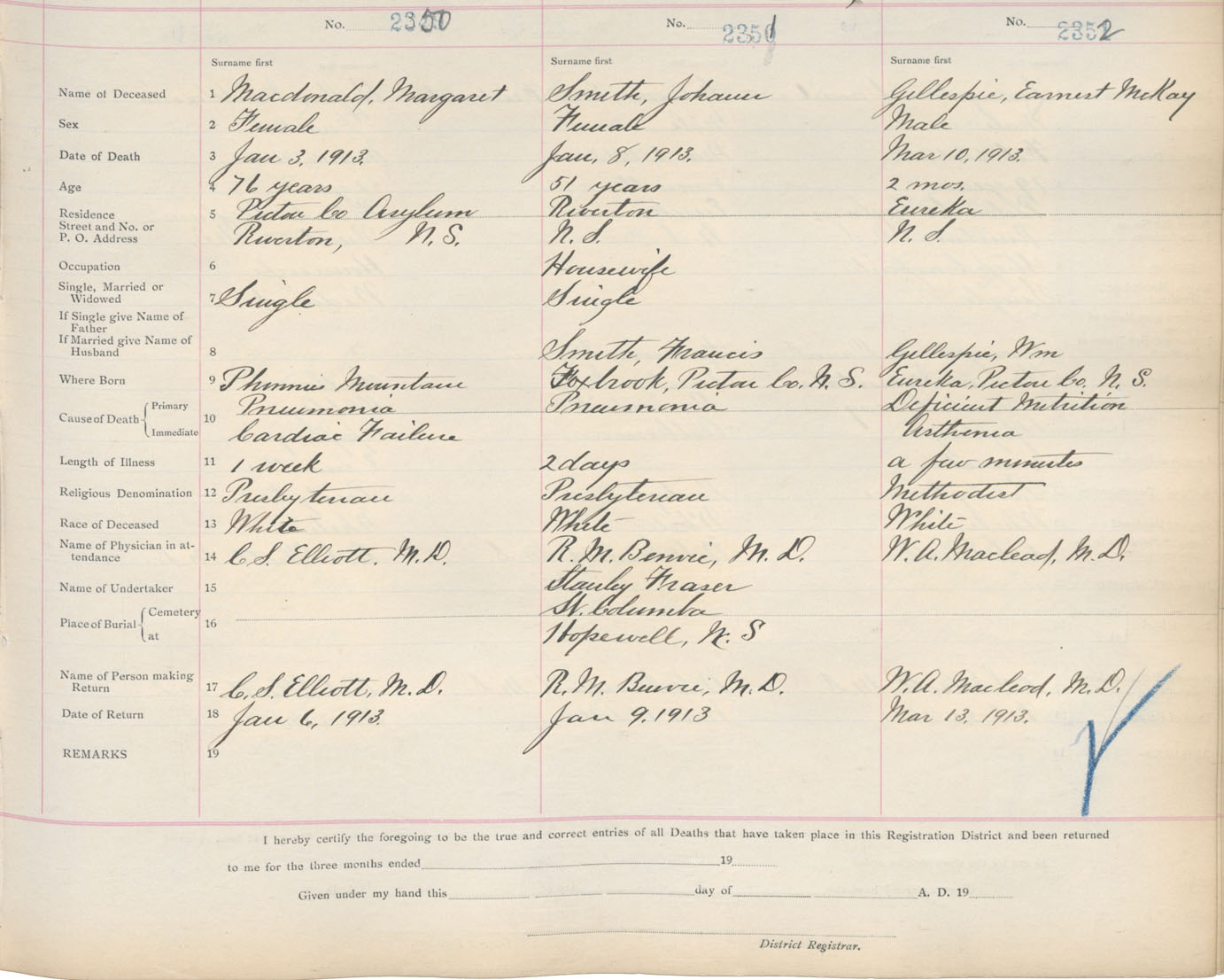 Death Registration: Year: 1913 book: 14 page: 392 number: 2350