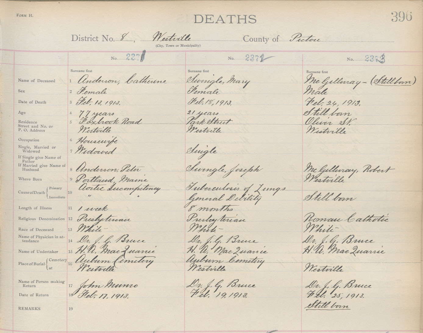 Death Registration: Year: 1913 book: 14 page: 396 number: 2373