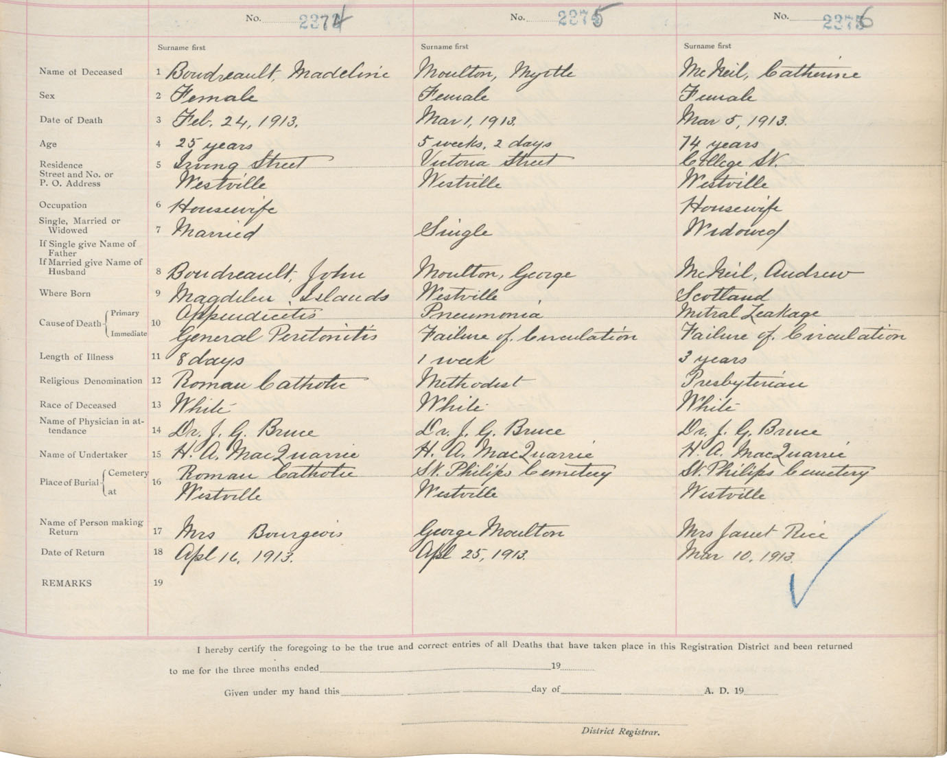 Death Registration: Year: 1913 book: 14 page: 396 number: 2376