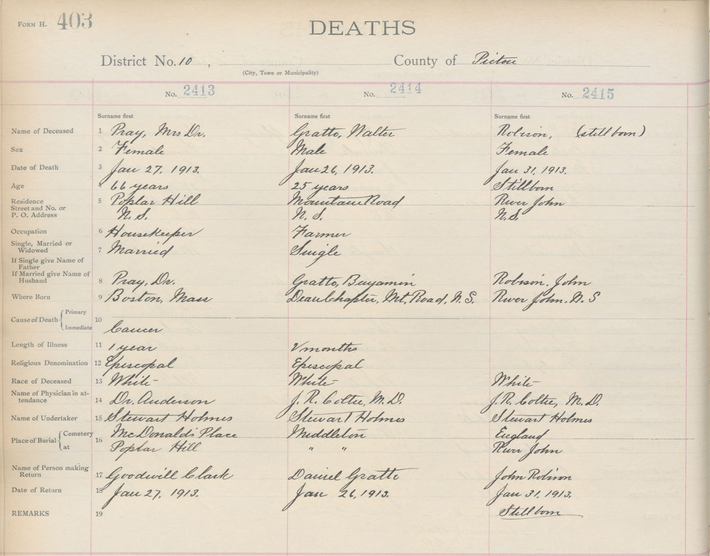 Female Death Registration: Year: 1913 book: 14 page: 403 number: 2415