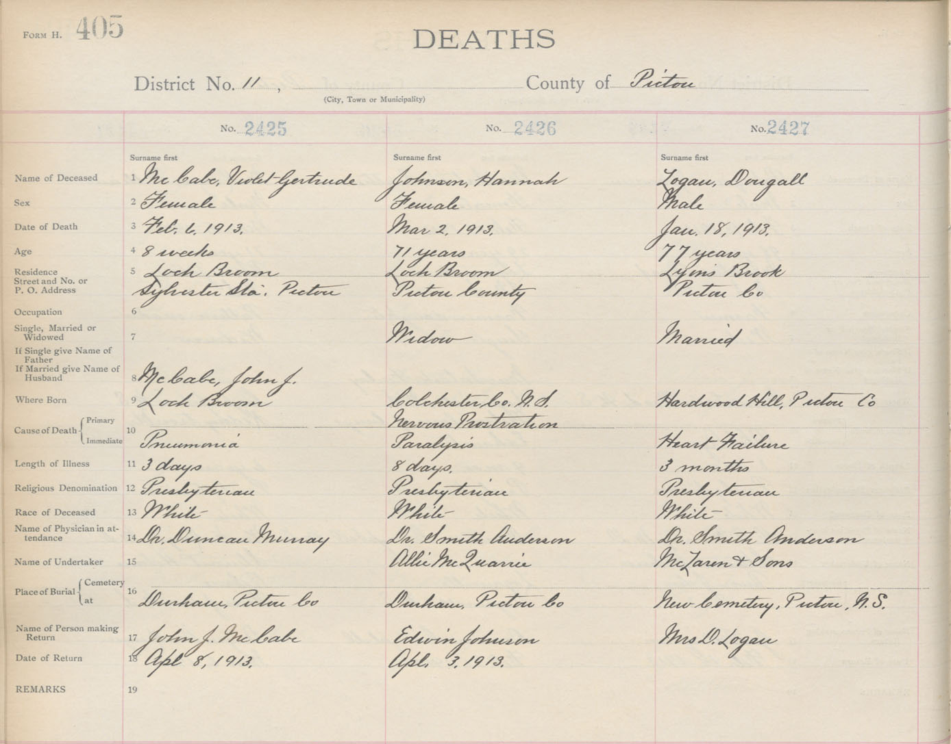 Death Registration: Year: 1913 book: 14 page: 405 number: 2427