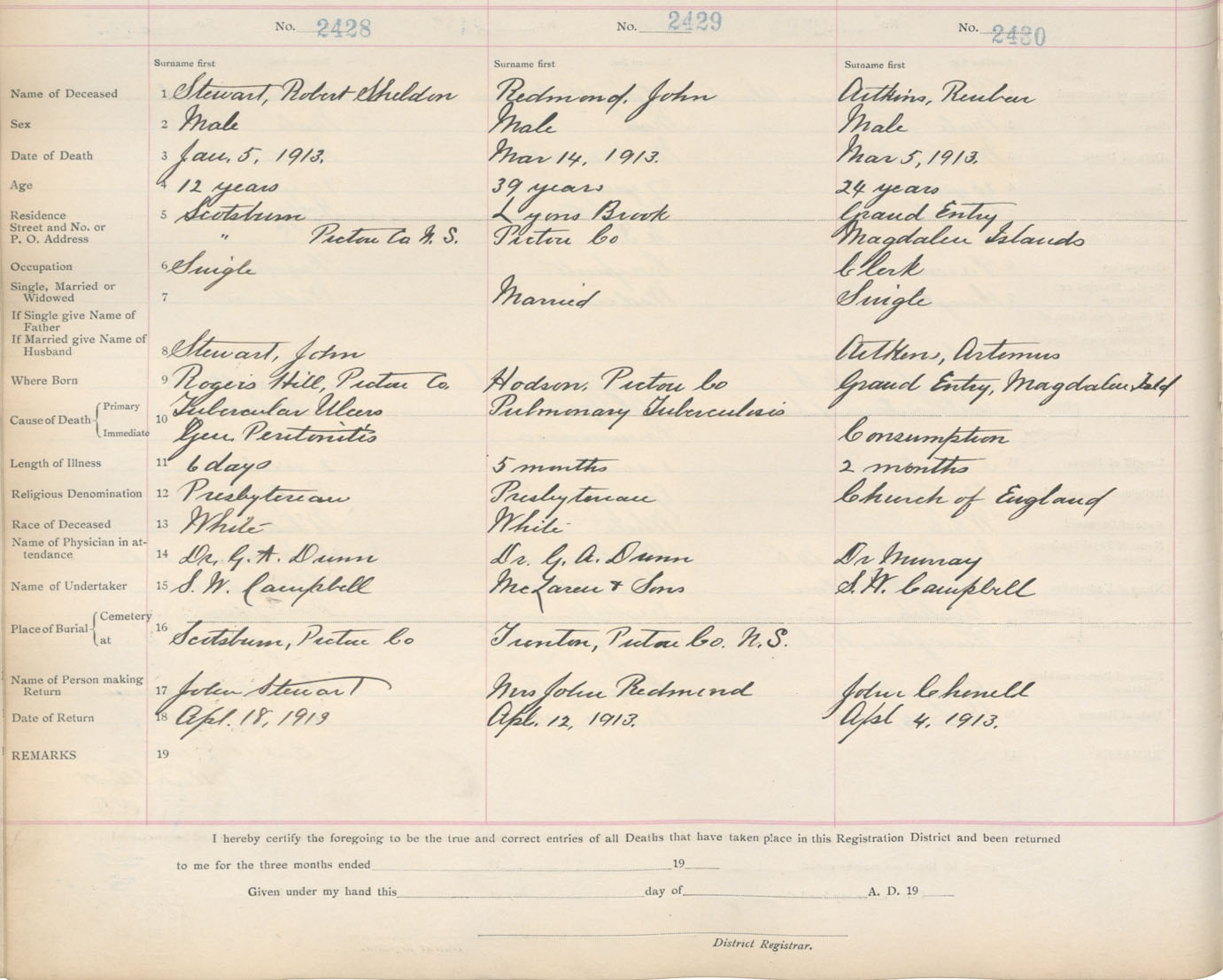 Death Registration: Year: 1913 book: 14 page: 405 number: 2430