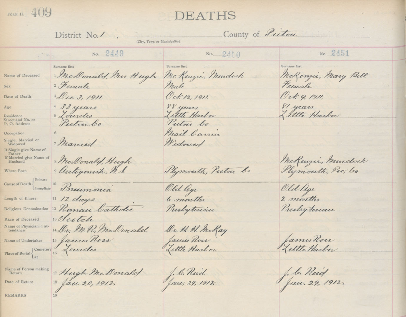 Death Registration: Year: 1911 book: 14 page: 409 number: 2451