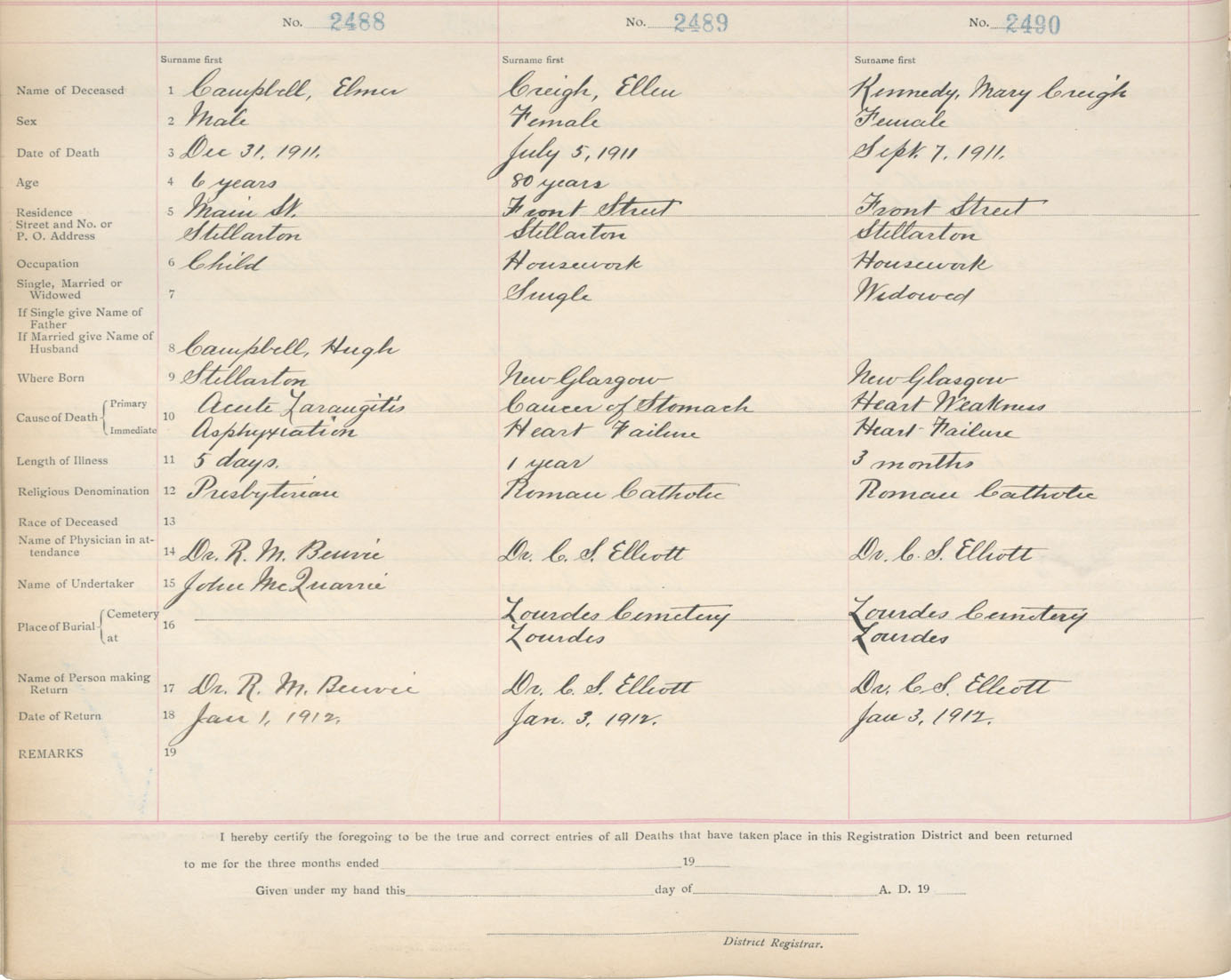 Death Registration: Year: 1911 book: 14 page: 415 number: 2490
