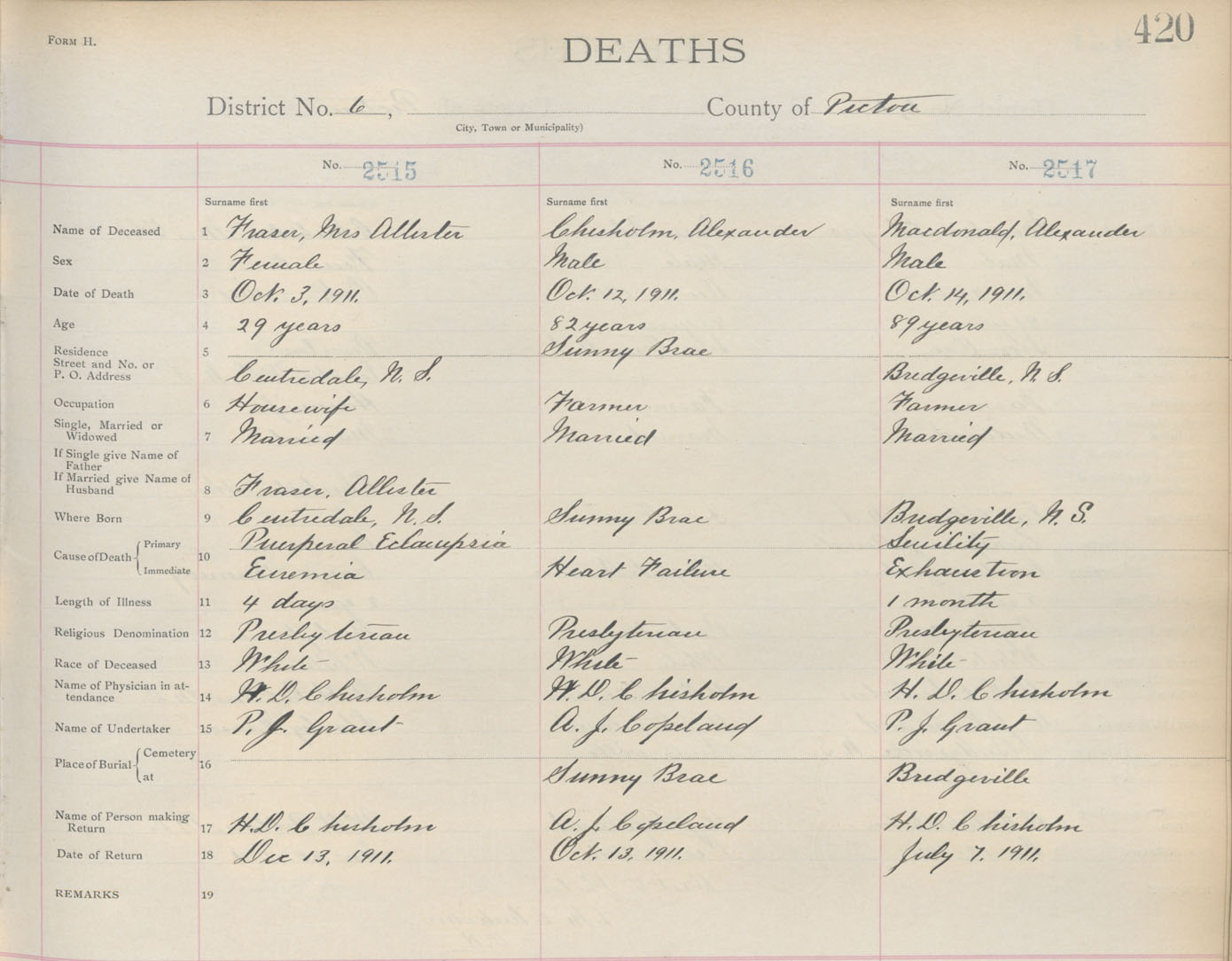 Death Registration: Year: 1911 book: 14 page: 420 number: 2517