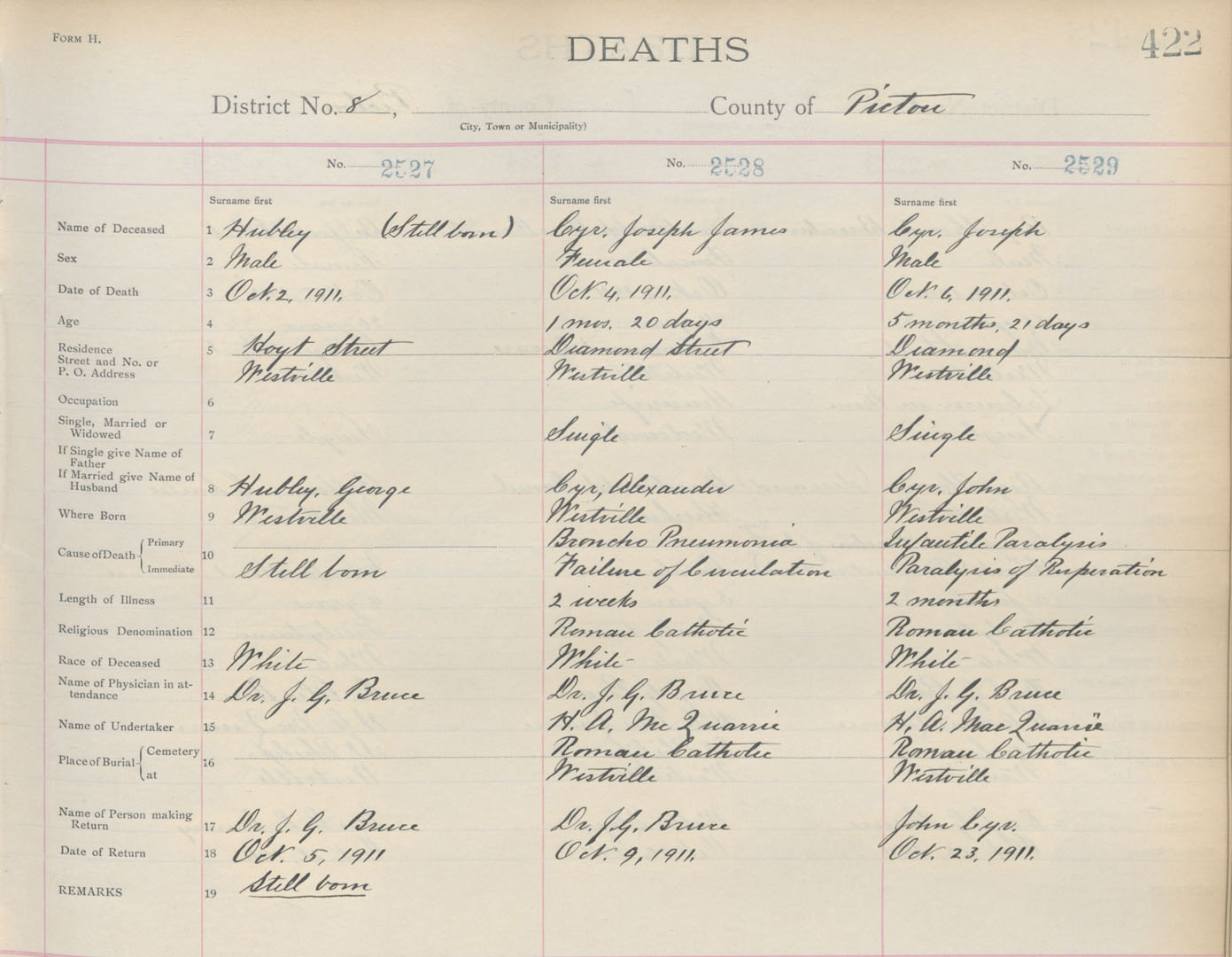 Death Registration: Year: 1911 book: 14 page: 422 number: 2529