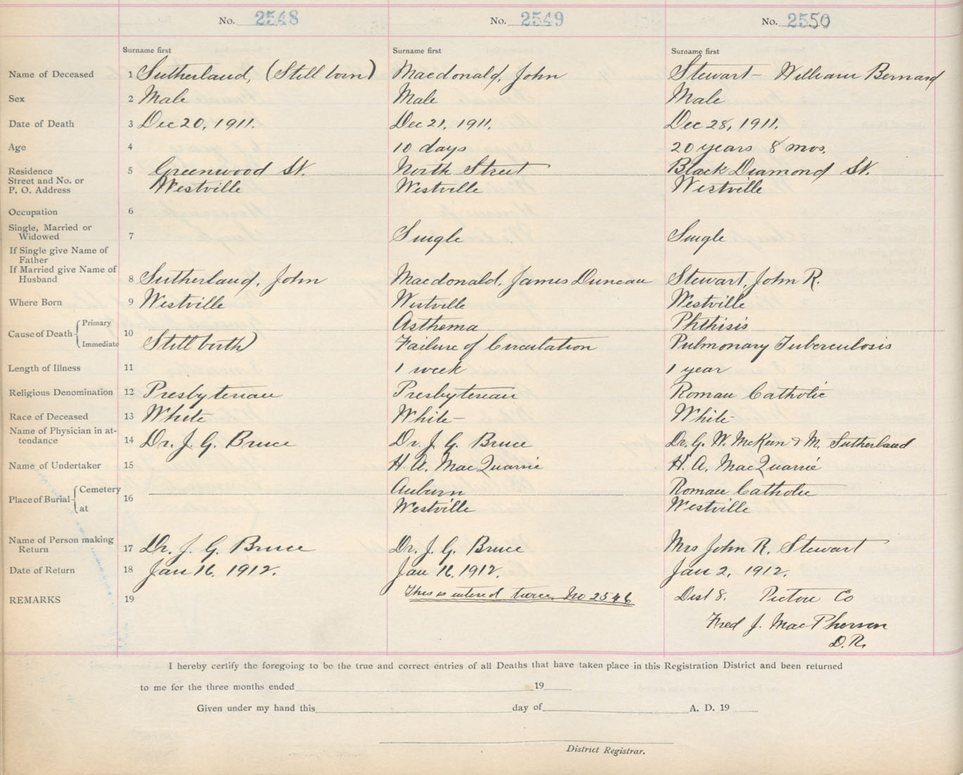 Death Registration: Year: 1911 book: 14 page: 425 number: 2549
