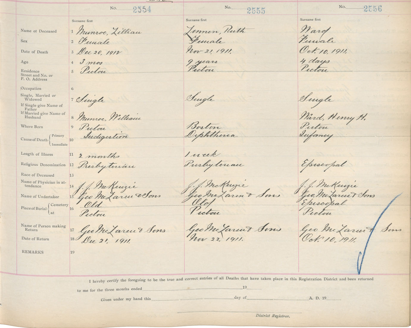 Death Registration: Year: 1911 book: 14 page: 426 number: 2554