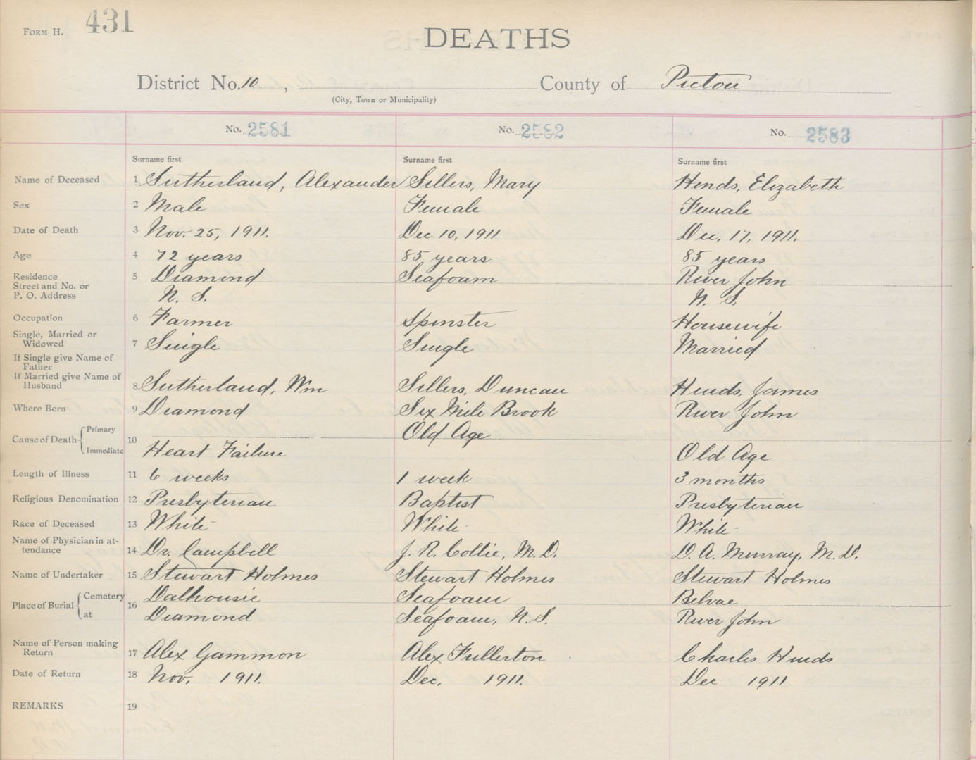 Death Registration: Year: 1911 book: 14 page: 431 number: 2581