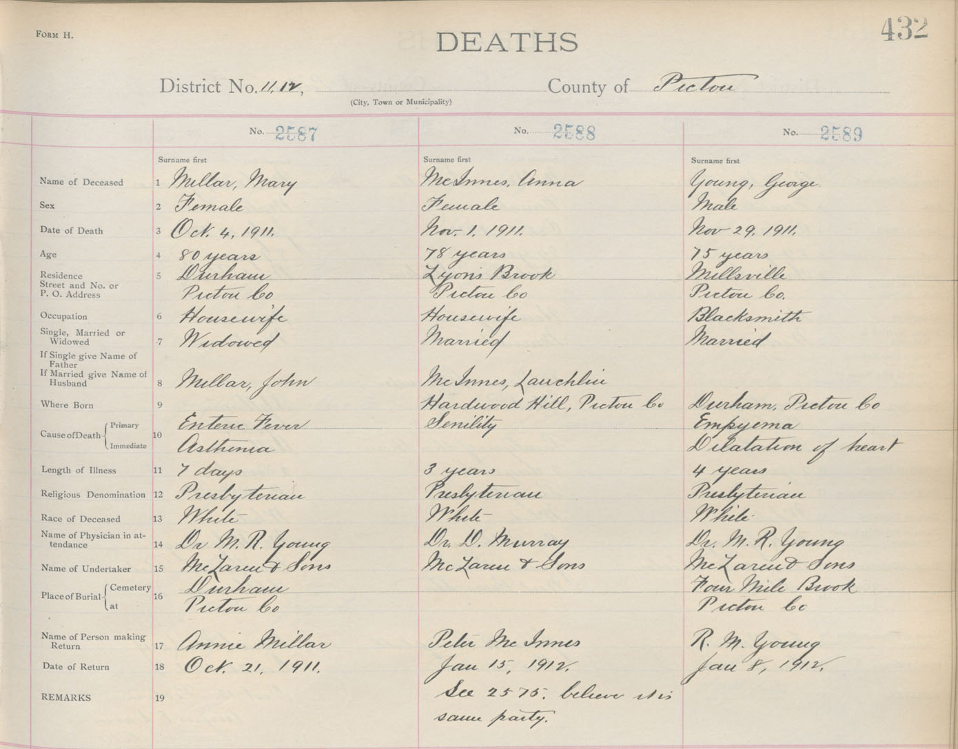 Death Registration: Year: 1911 book: 14 page: 432 number: 2587