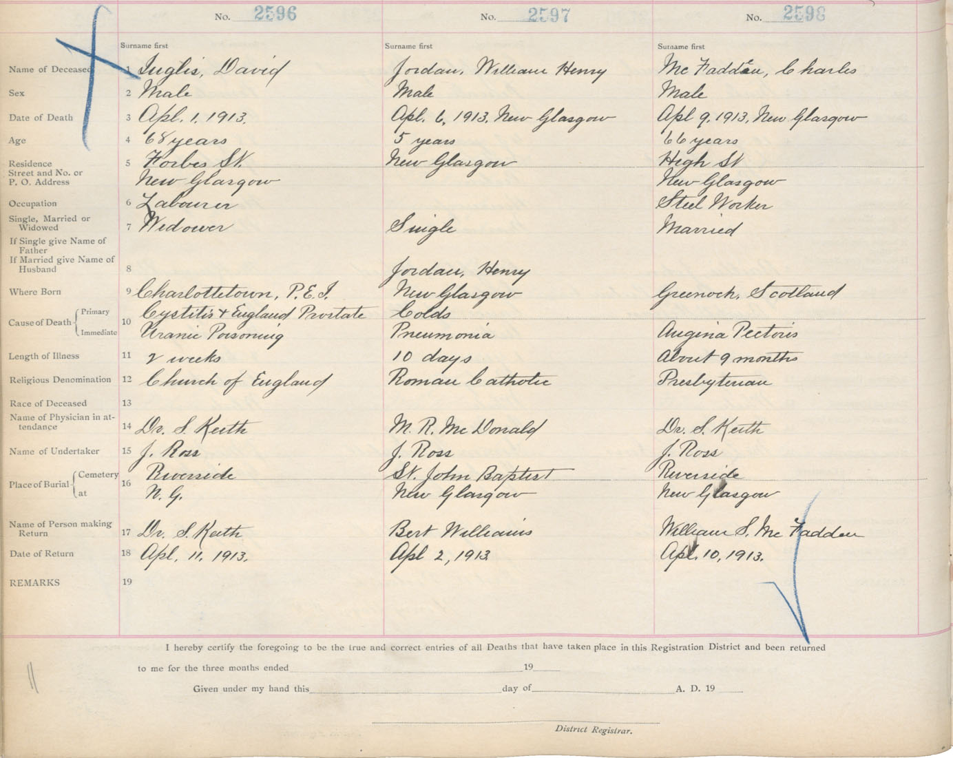 Death Registration: Year: 1913 book: 14 page: 433 number: 2596