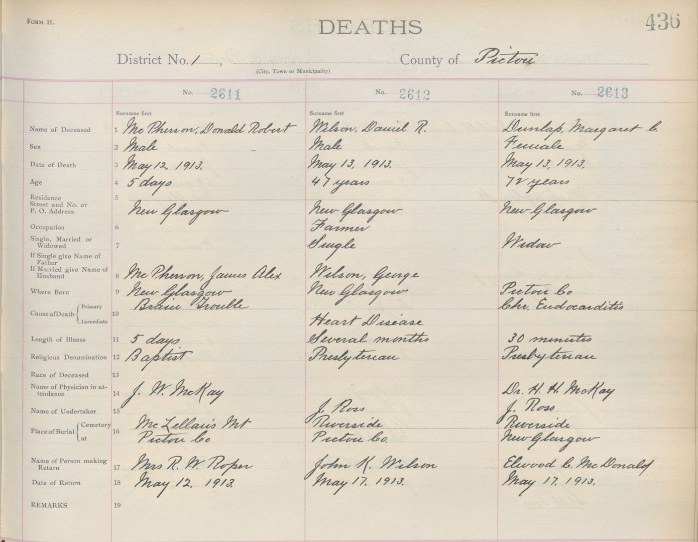 Death Registration: Year: 1913 book: 14 page: 436 number: 2611