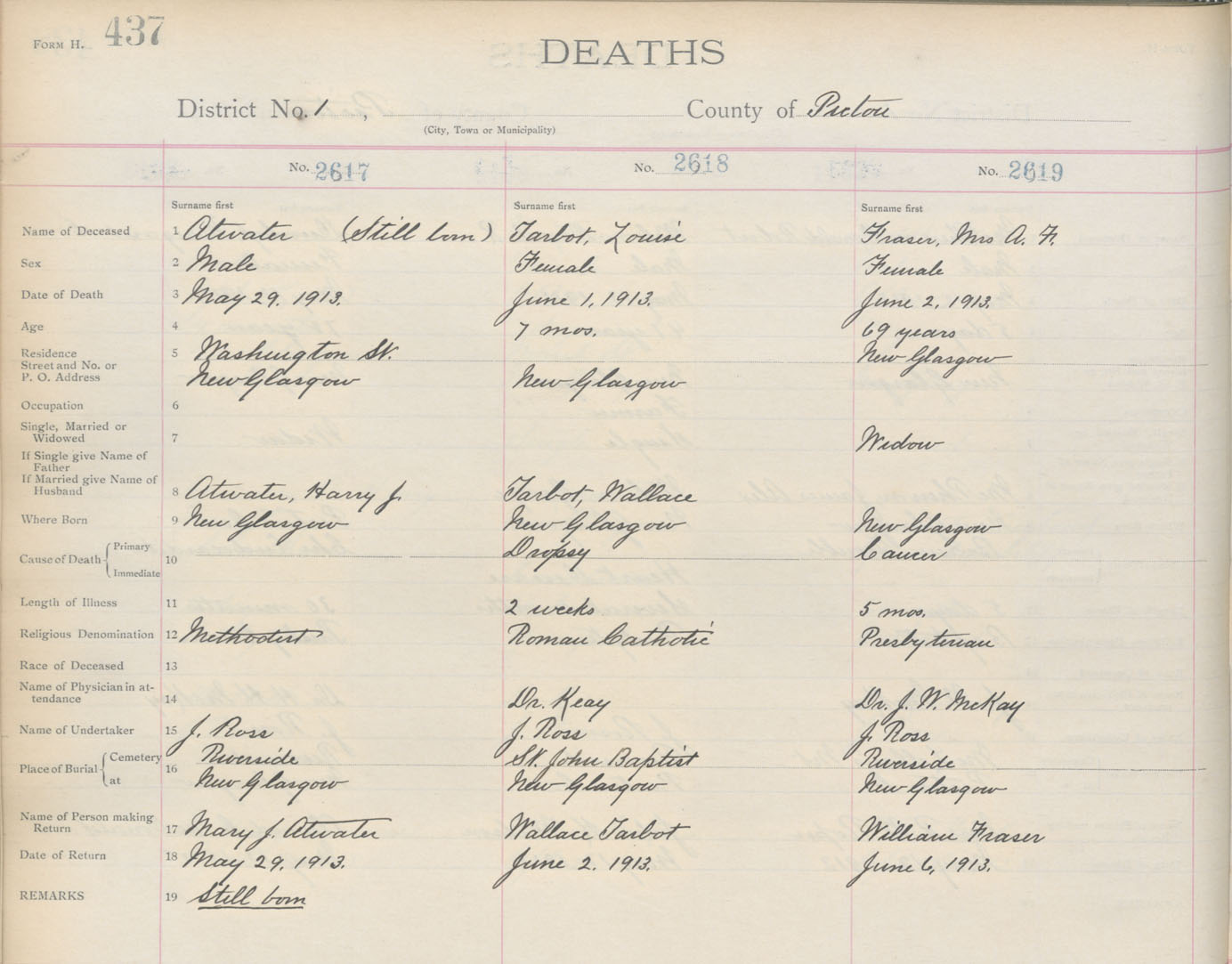 Male Death Registration: Year: 1913 book: 14 page: 437 number: 2617