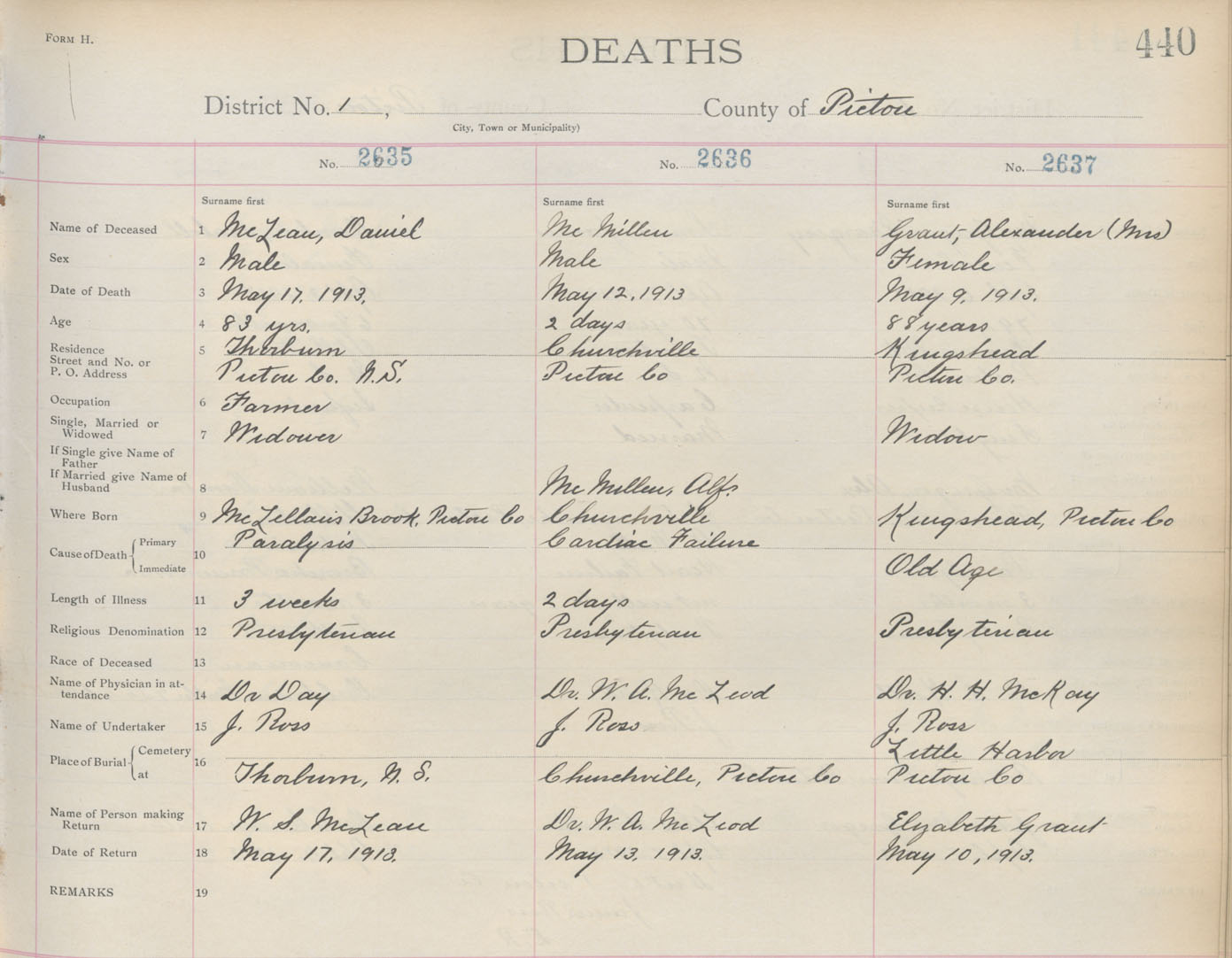 Death Registration: Year: 1913 book: 14 page: 440 number: 2635