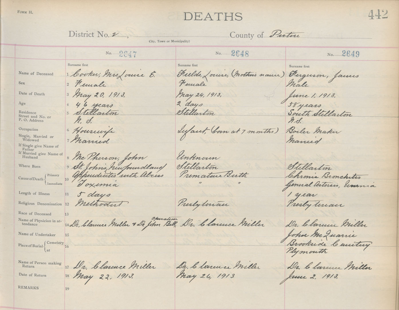 Death Registration: Year: 1913 book: 14 page: 442 number: 2647