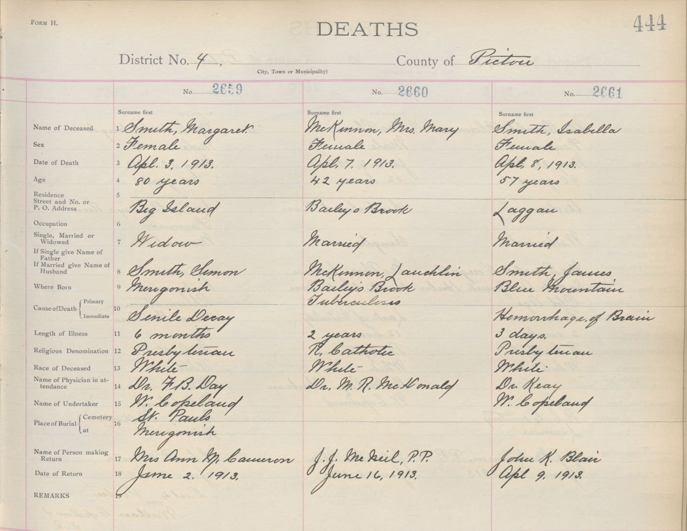 Death Registration: Year: 1913 book: 14 page: 444 number: 2659