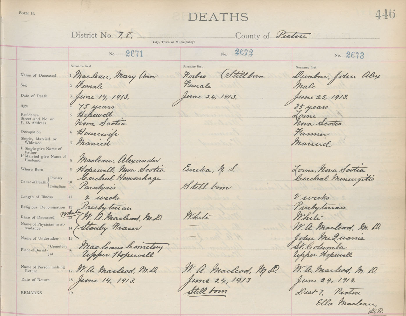 Death Registration: Year: 1913 book: 14 page: 446 number: 2671