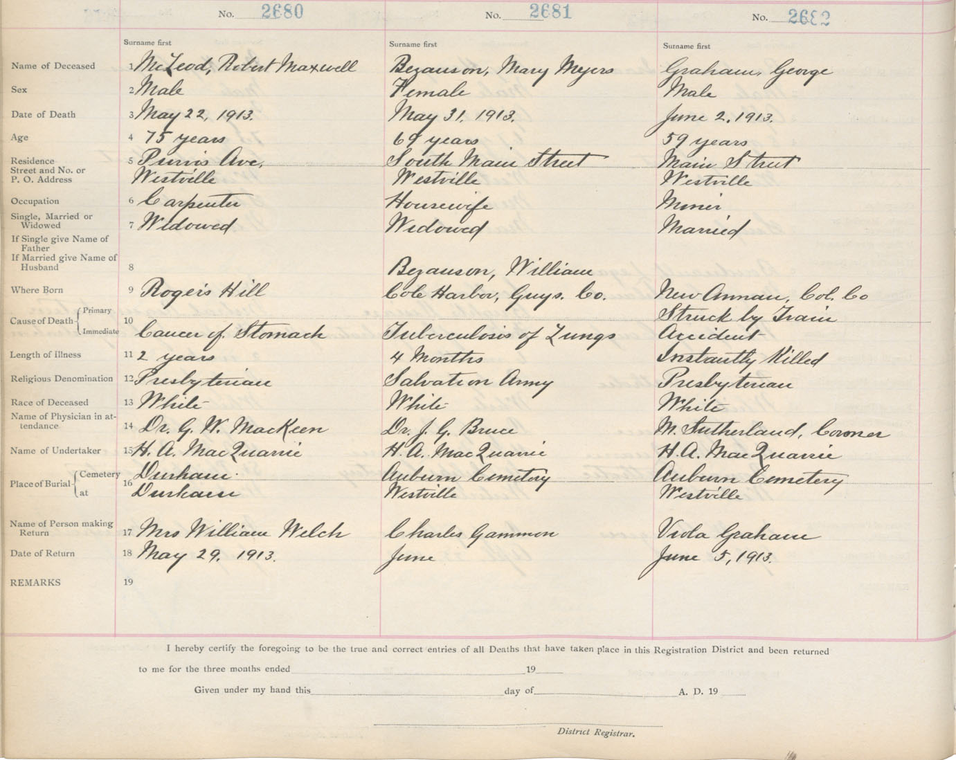 Death Registration: Year: 1913 book: 14 page: 447 number: 2680