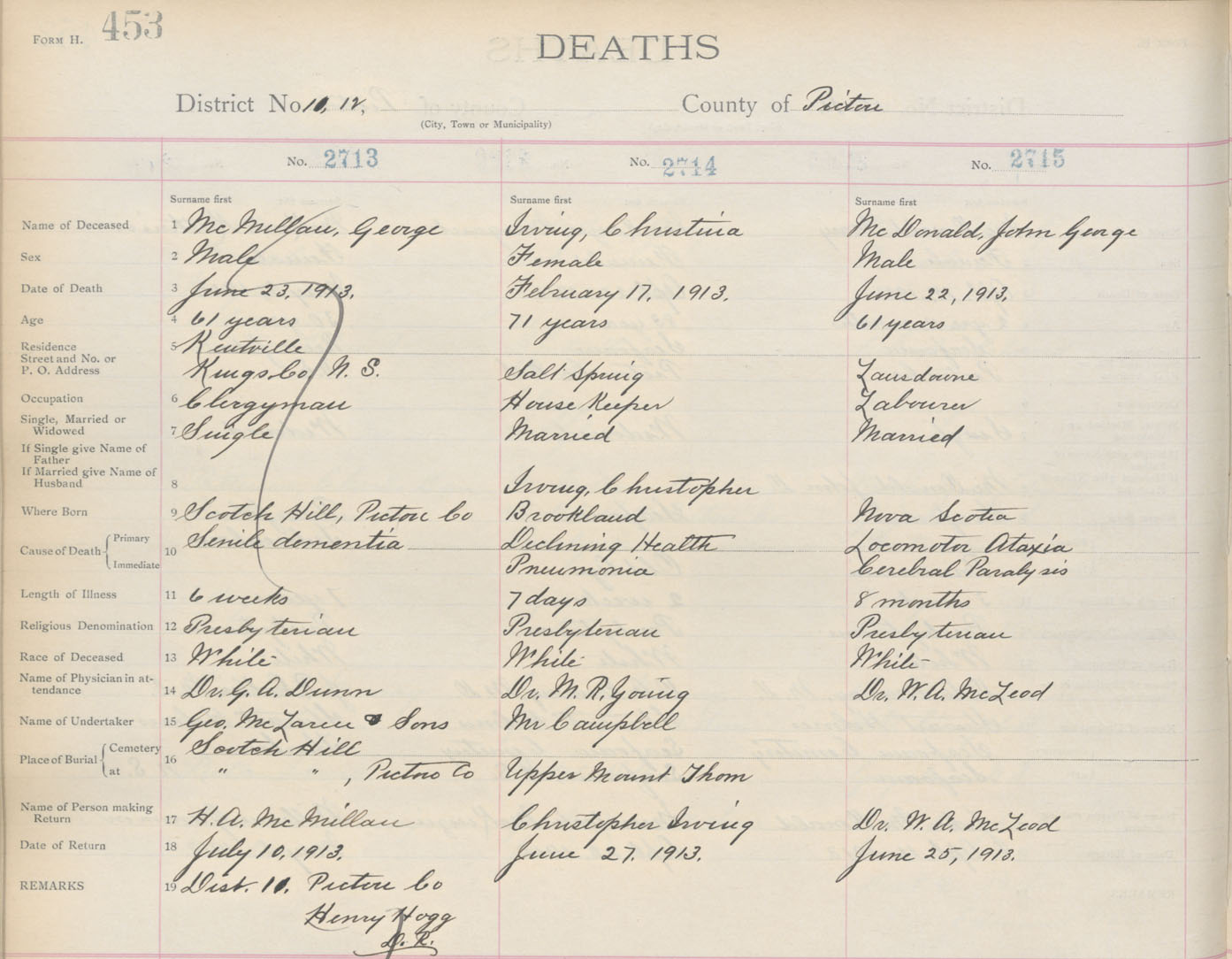 Death Registration: Year: 1913 book: 14 page: 453 number: 2714