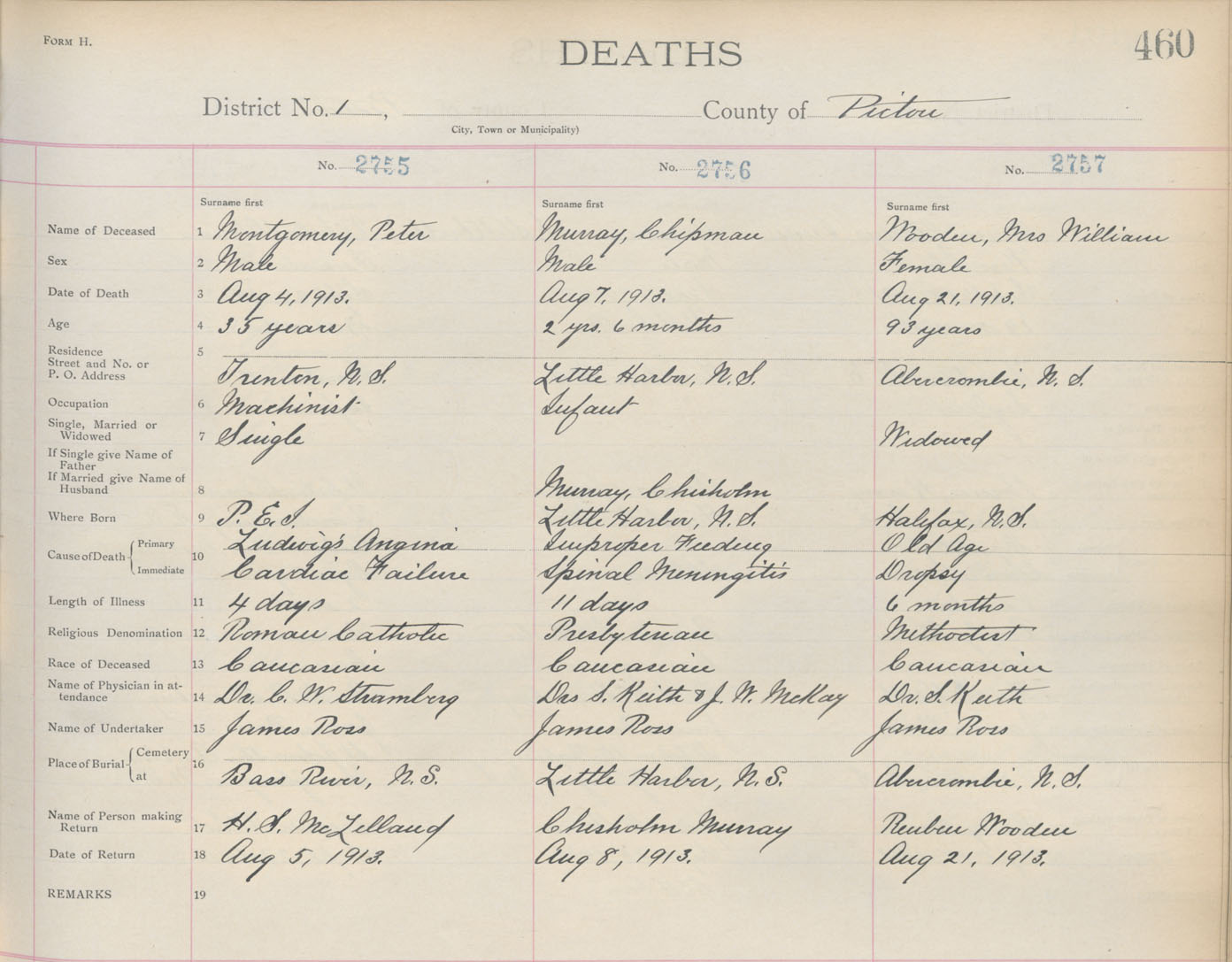 Death Registration: Year: 1913 book: 14 page: 460 number: 2755
