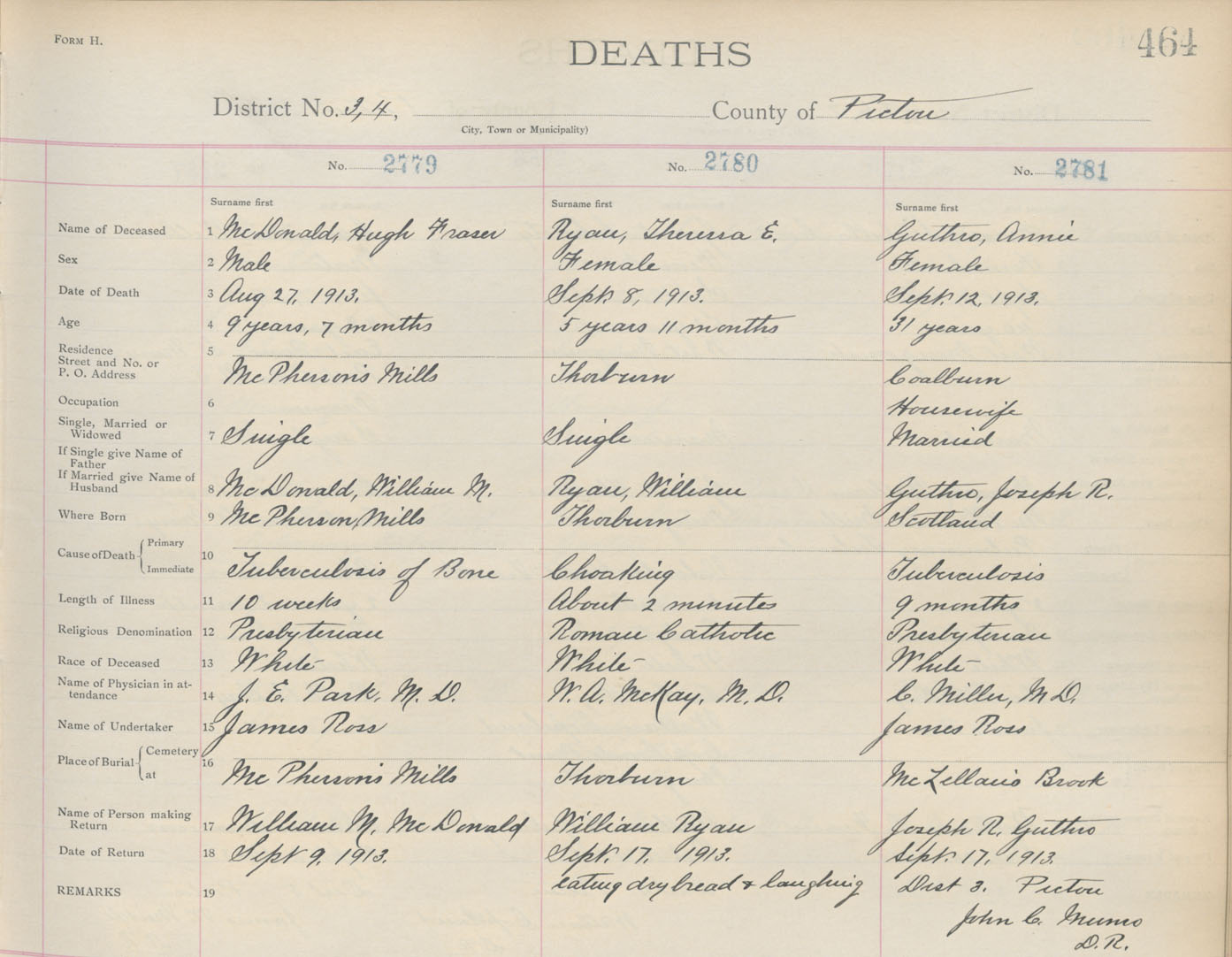 Death Registration: Year: 1913 book: 14 page: 464 number: 2779