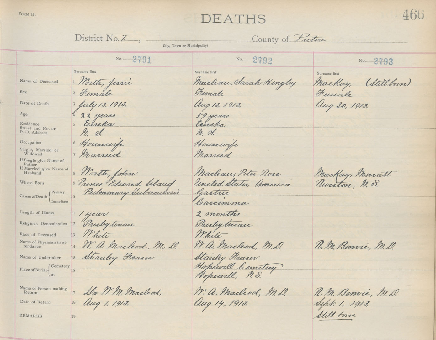 Death Registration: Year: 1913 book: 14 page: 466 number: 2791