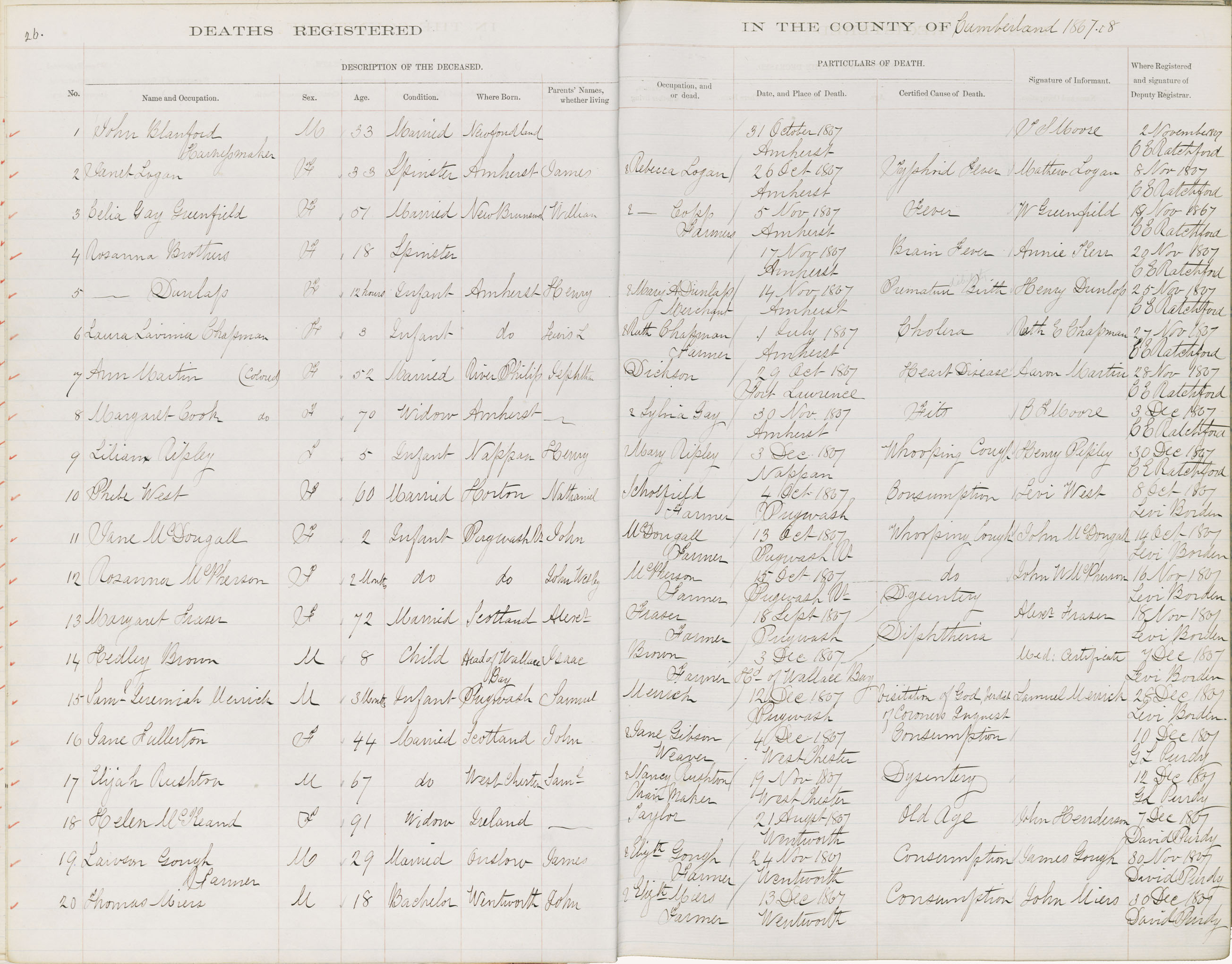 Death Registration: Year: 1867 book: 1805 page: 26 number: 20