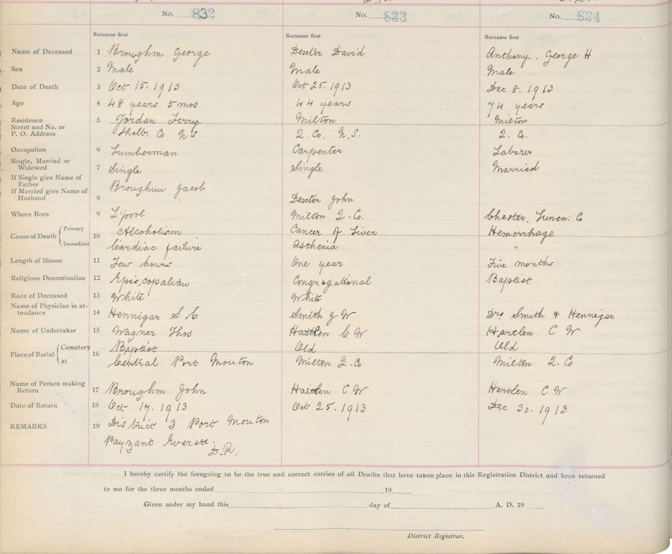 Death Registration: Year: 1913 book: 15 page: 139 number: 834