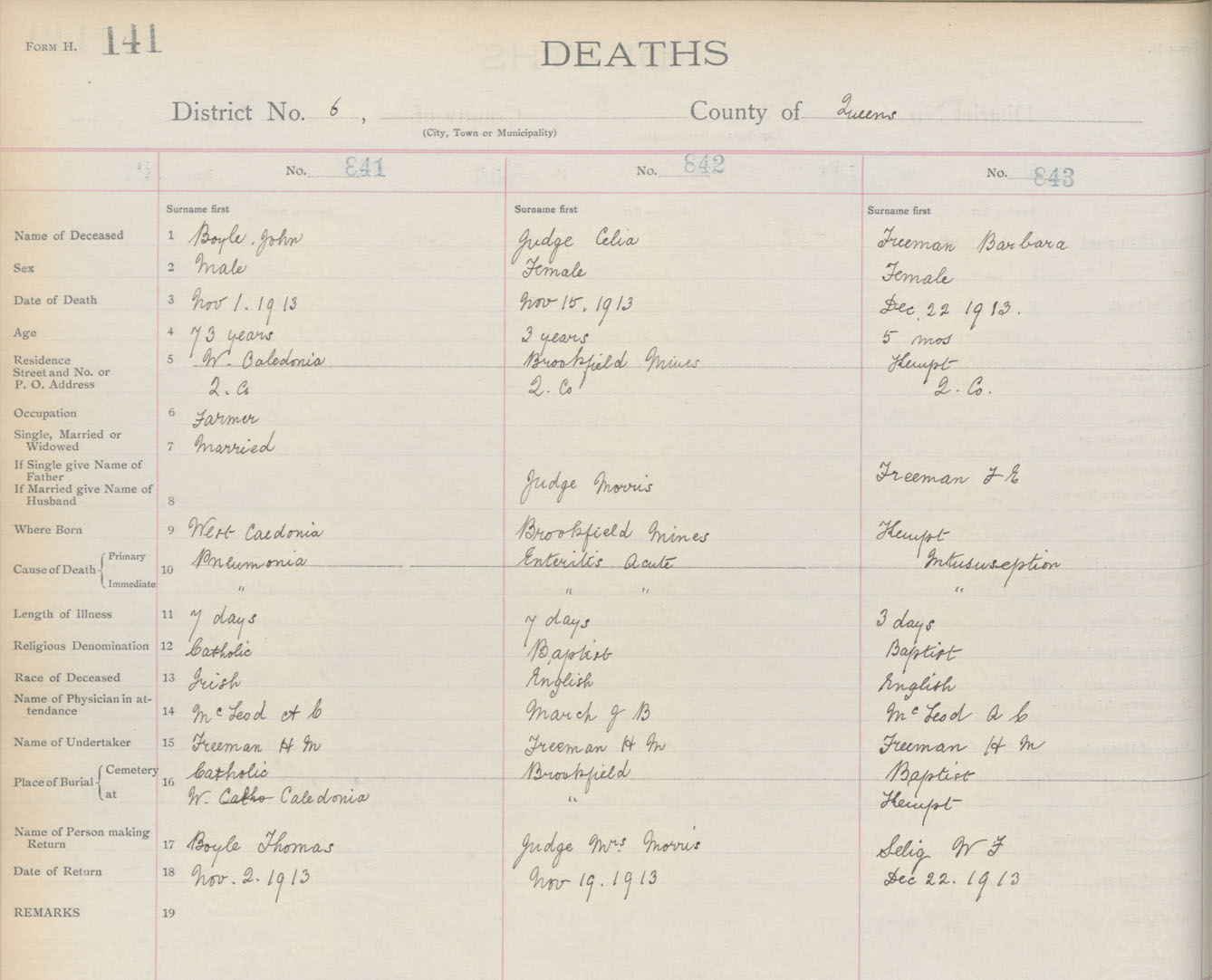 Death Registration: Year: 1913 book: 15 page: 141 number: 843