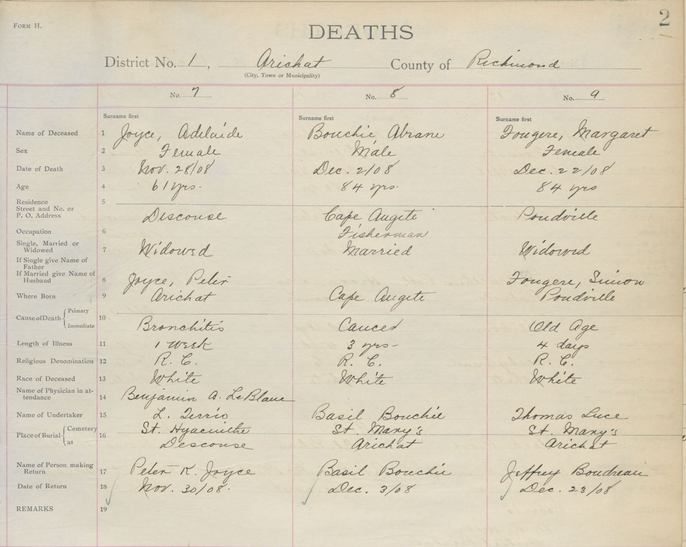 Death Registration: Year: 1908 book: 16 page: 2 number: 9