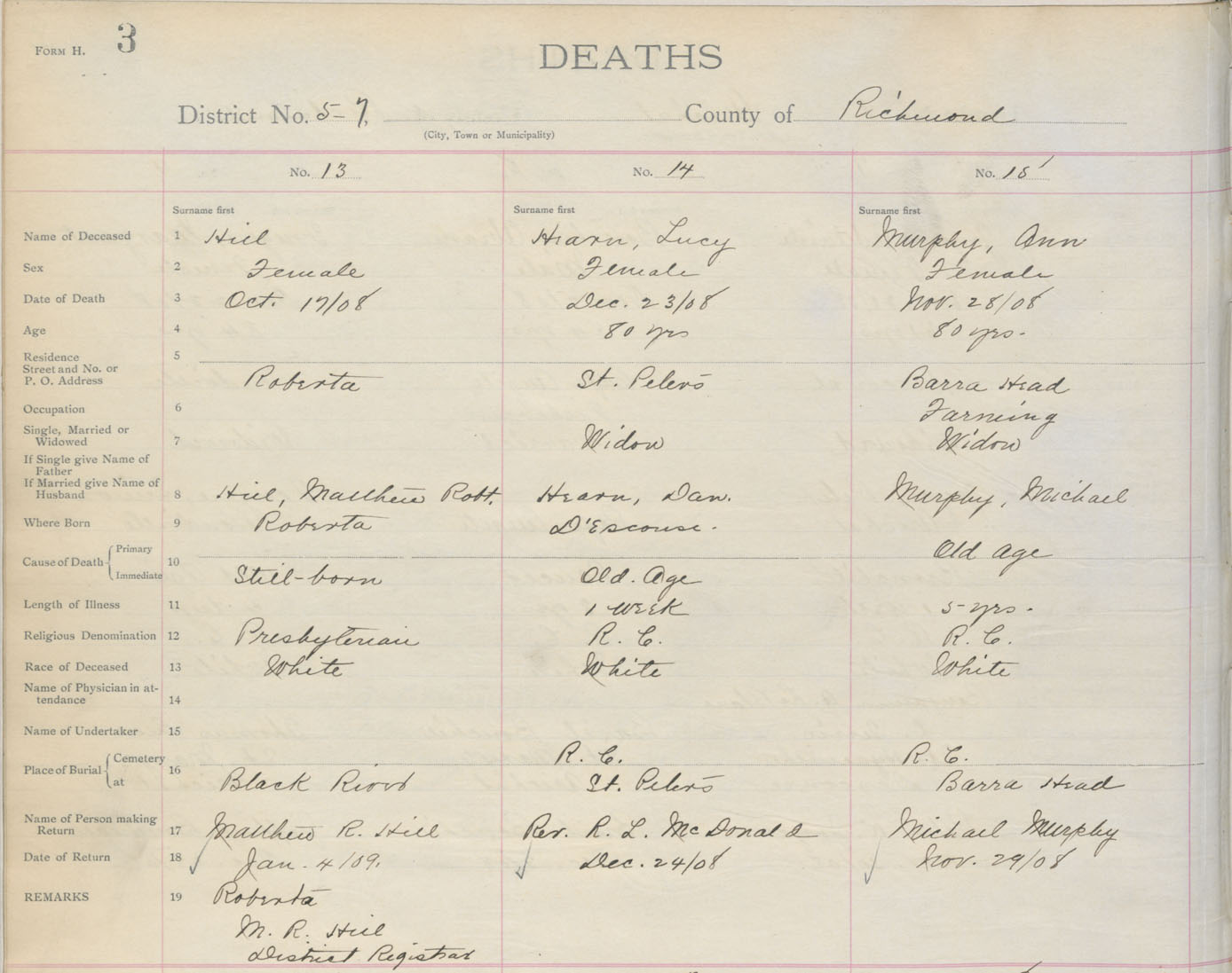 Death Registration: Year: 1908 book: 16 page: 3 number: 15