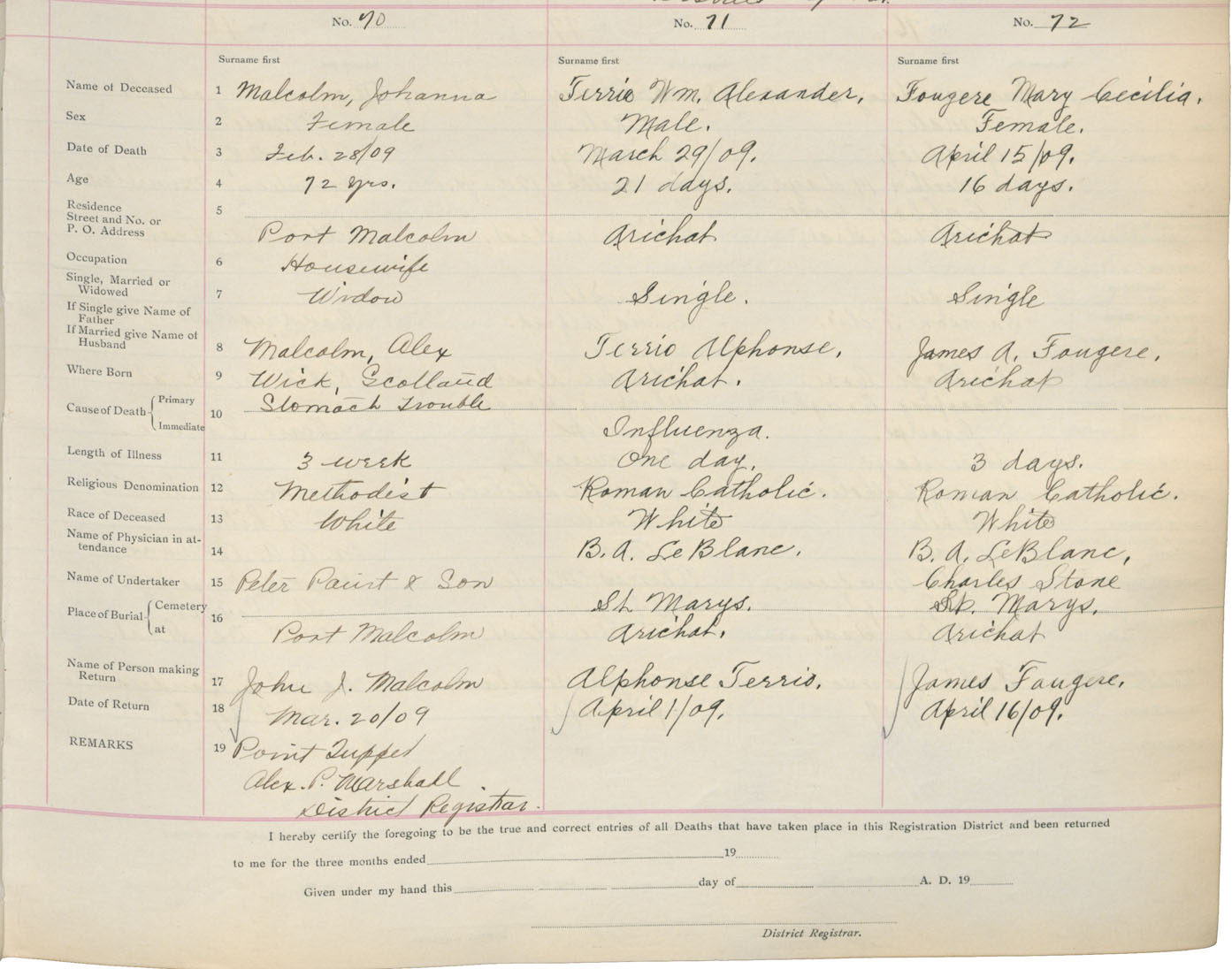 Death Registration: Year: 1909 book: 16 page: 12 number: 72