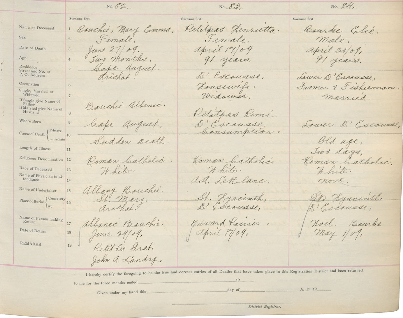 Death Registration: Year: 1909 book: 16 page: 14 number: 84