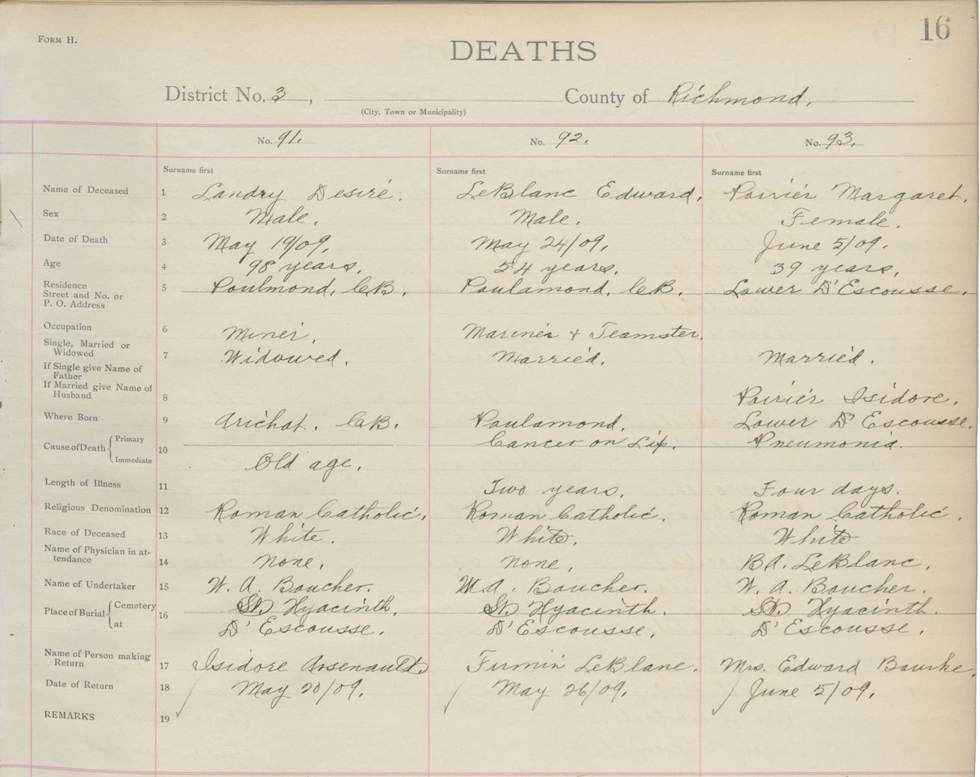 Death Registration: Year: 1909 book: 16 page: 16 number: 93