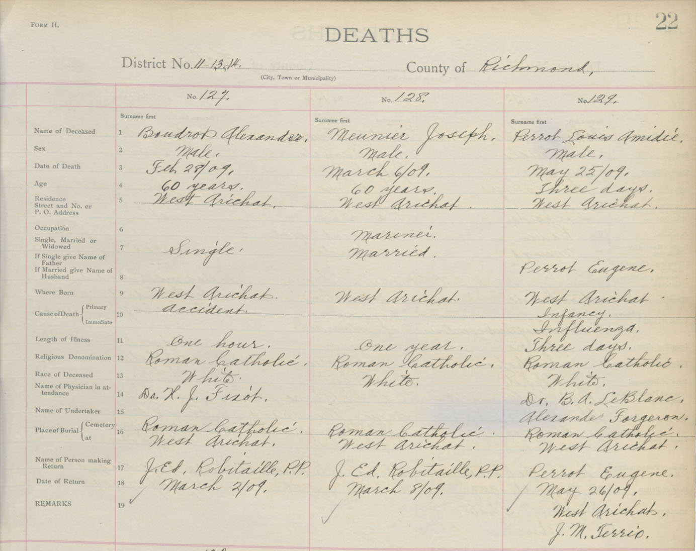 Death Registration: Year: 1909 book: 16 page: 22 number: 129
