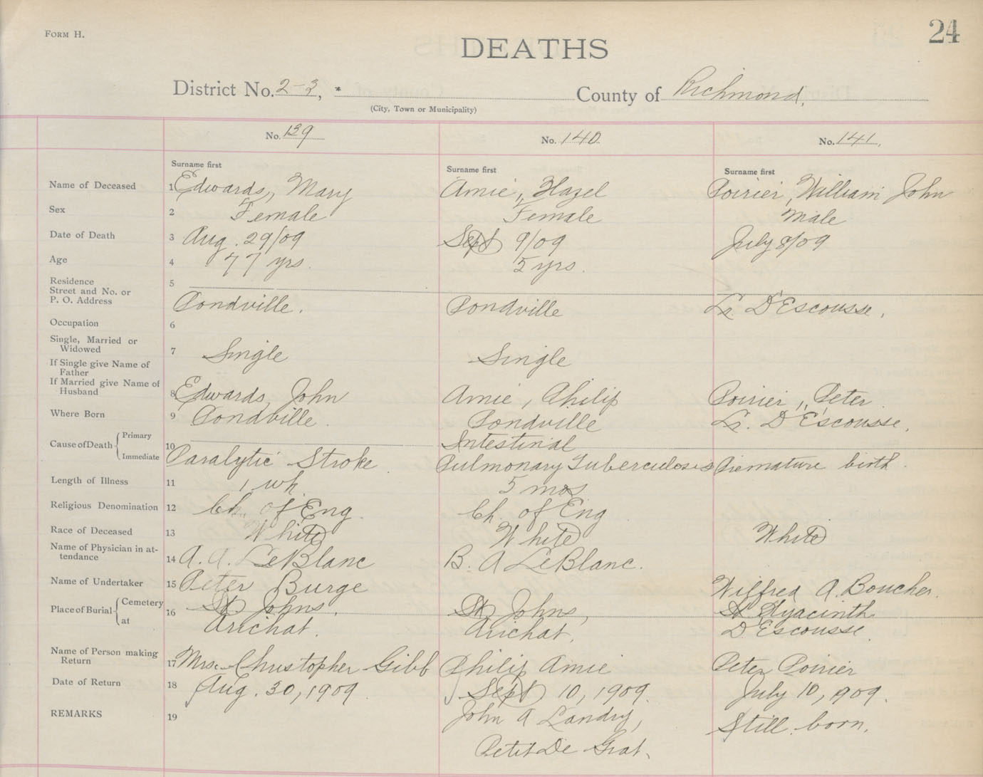 Death Registration: Year: 1909 book: 16 page: 24 number: 141