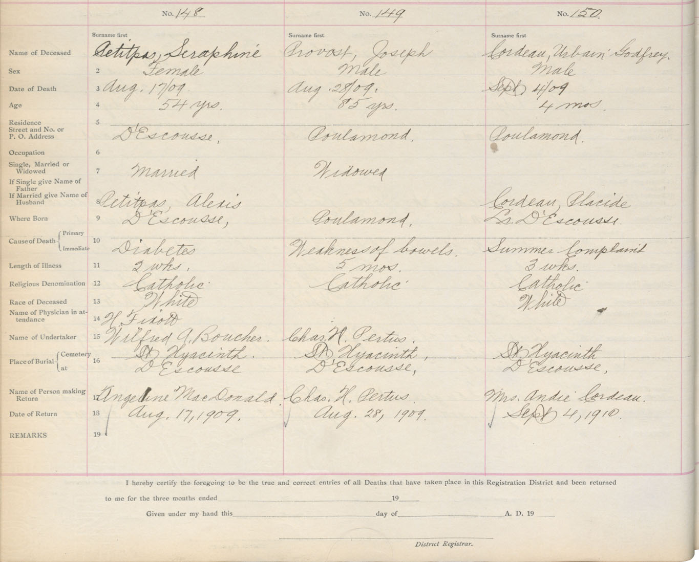 Death Registration: Year: 1909 book: 16 page: 25 number: 150