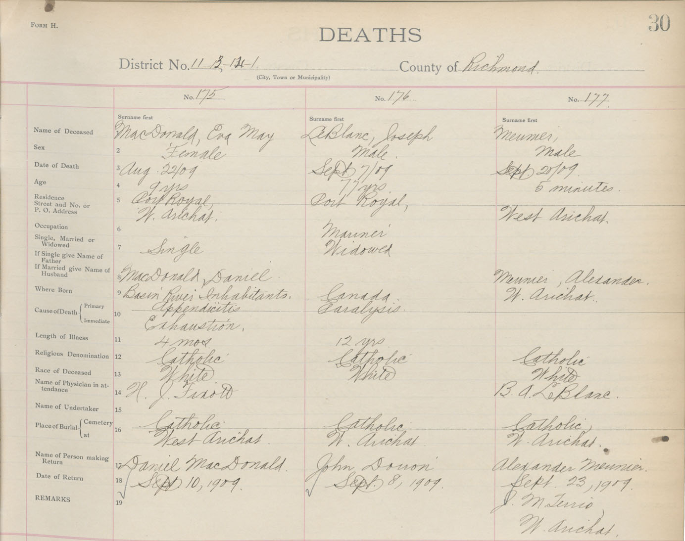 Death Registration: Year: 1909 book: 16 page: 30 number: 177