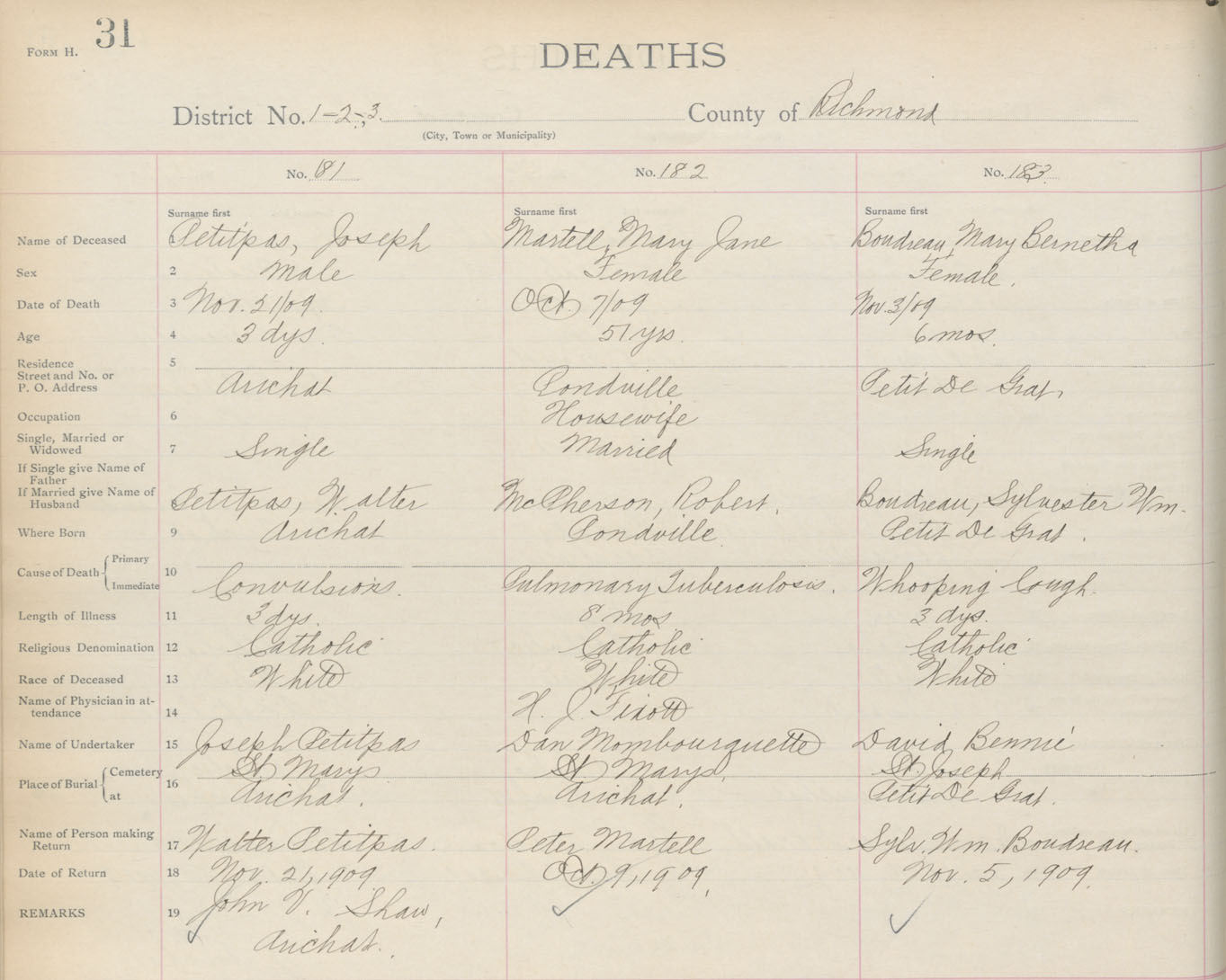 Death Registration: Year: 1909 book: 16 page: 31 number: 181